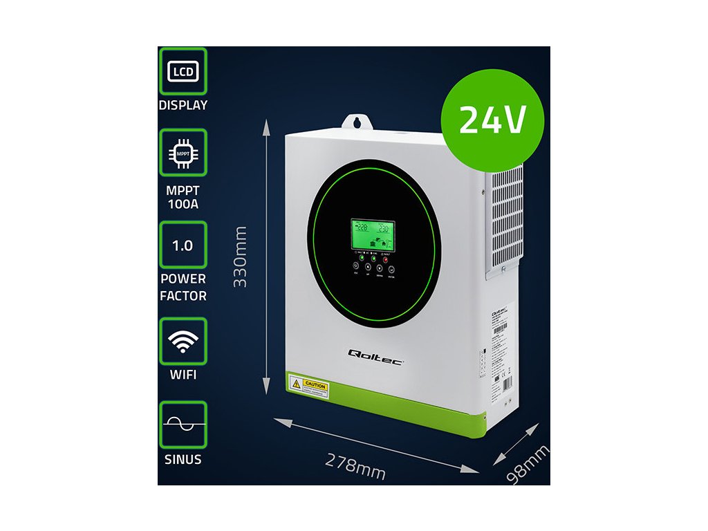 Hybridní solární invertor mimo síť 3500 kW | 100A | 24V | MPPT | Sine | Možnost Wi-Fi | Faktor výkonu 1.0