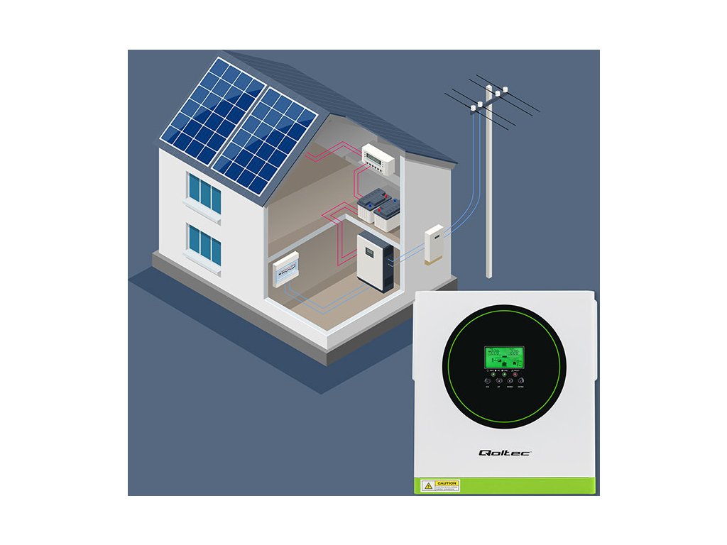 Účinnost fotovoltaické instalace závisí na výběru vhodného invertoru, tedy solárního. Invertor hraje v tomto systému klíčovou roli tím, že přeměňuje stejnosměrný proud generovaný fotovoltaickými panely na střídavý proud používaný domácími spotřebiči . Off-grid hybridní invertor spojuje fotovoltaickou instalaci, zásobník energie a elektrickou síť .