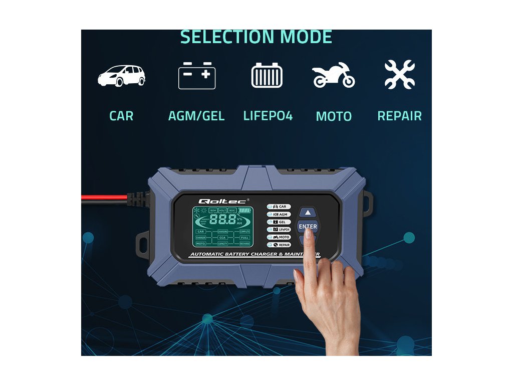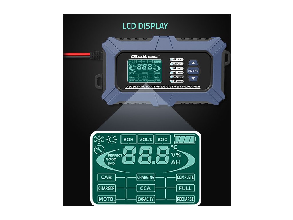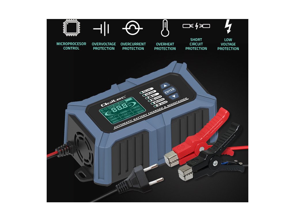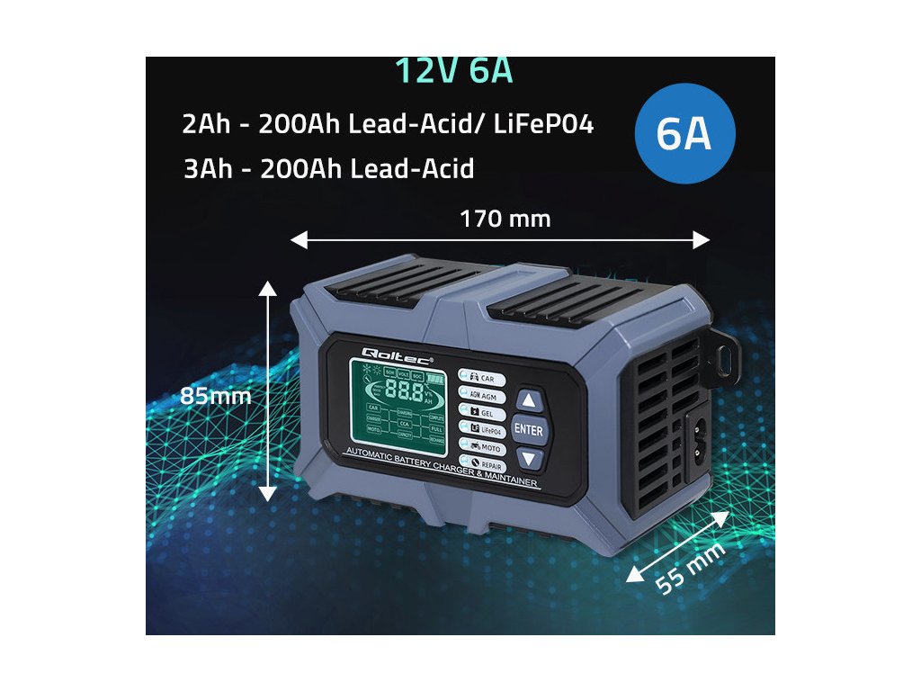 Nabíječka značky Qoltec je mikroprocesorová s přesností při nabíjení , nabízí 6 provozních režimů , což značně zjednodušuje proces nabíjení, jedna nabíječka stačí pro různé typy baterií a podporuje: