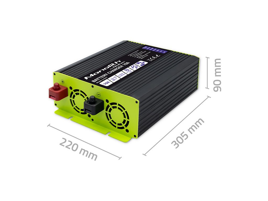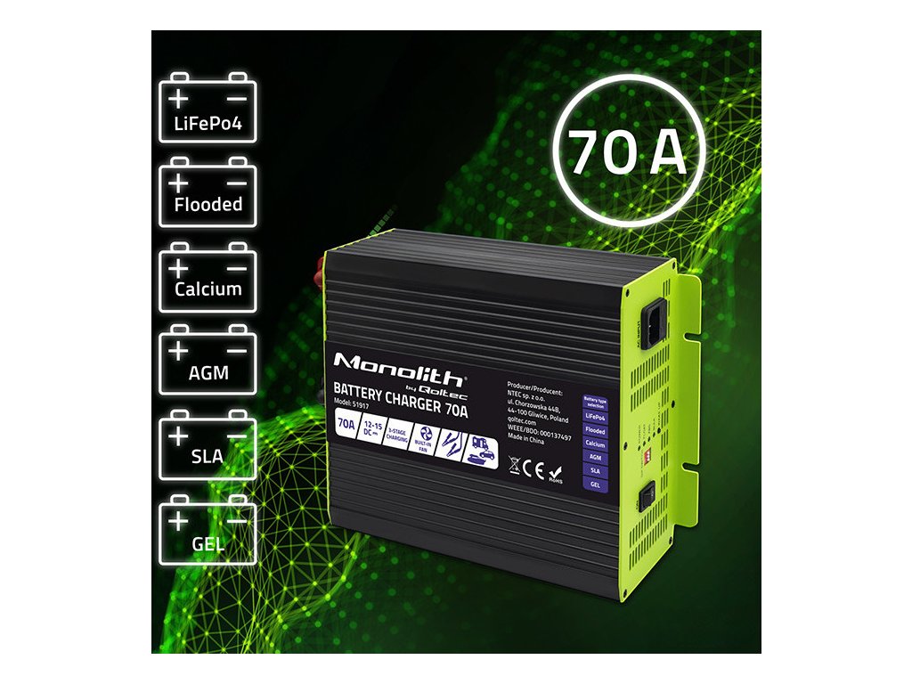 Inteligentní profesionální monolitní nabíječka pro LiFePO4/AGM/gelové/SLA baterie | 70A | 12V | Rychlé nabíjení