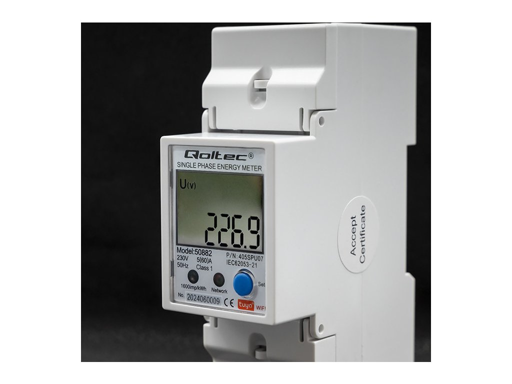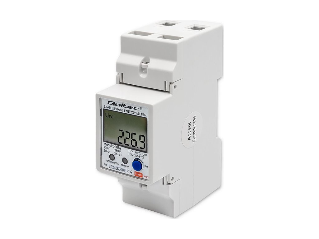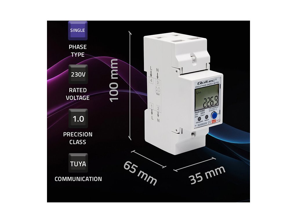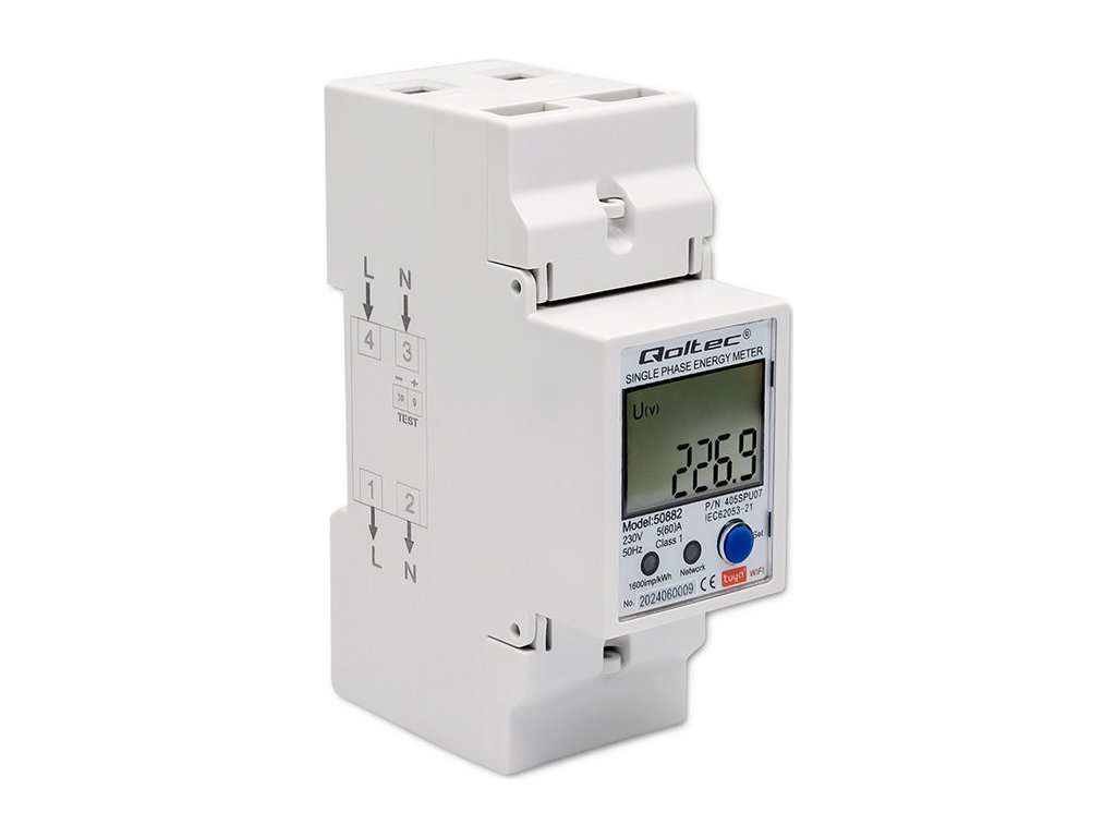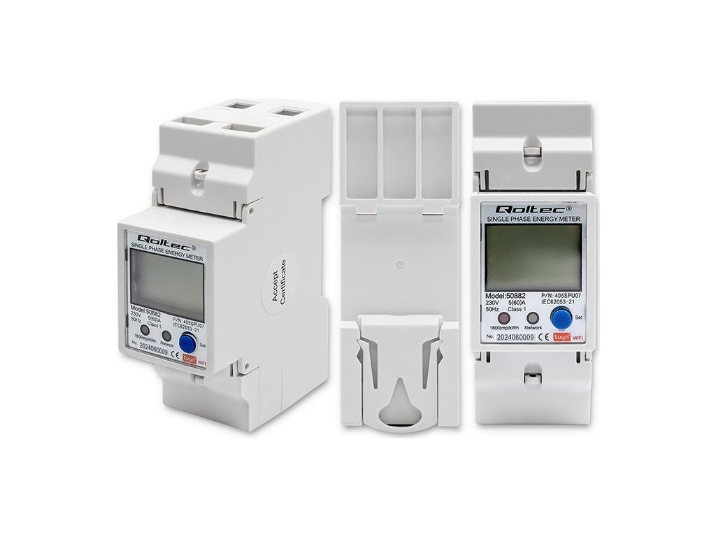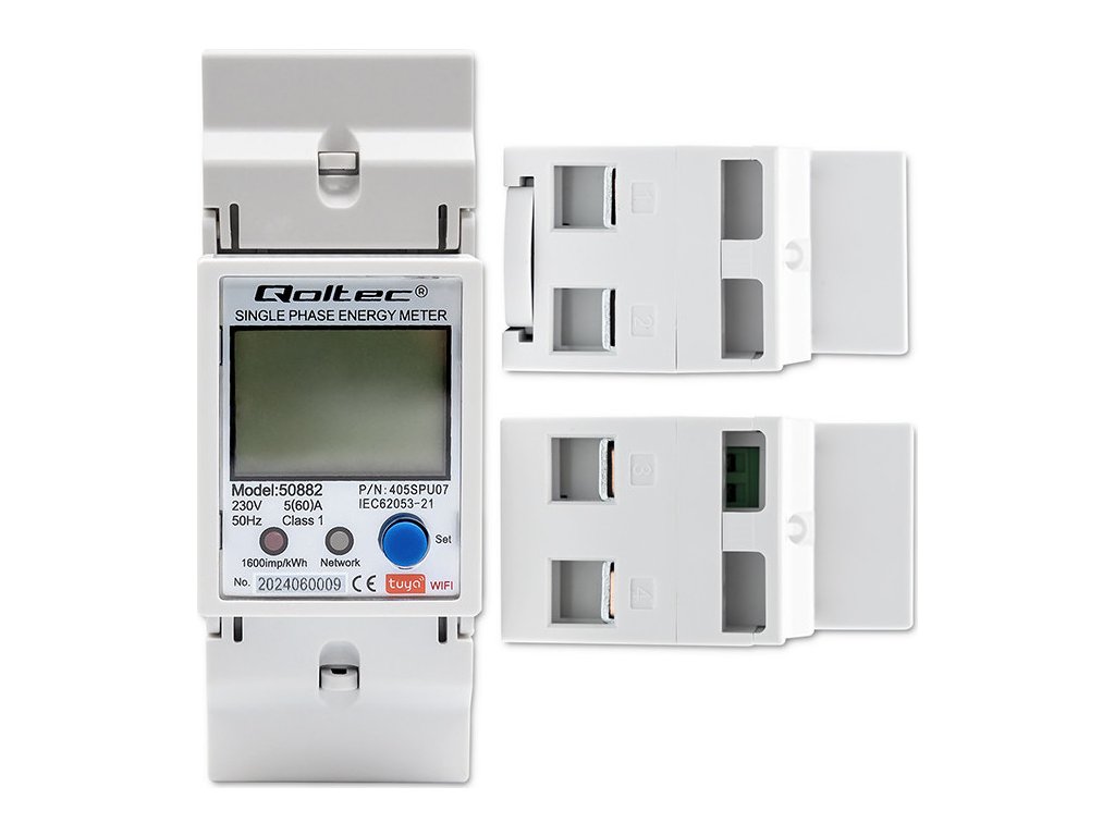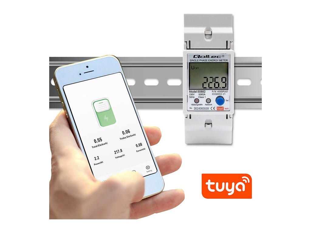 Jednofázové elektronické počítadlo | měřič spotřeby energie na DIN lištu | Wifi | TUYA | 230V | LCD |