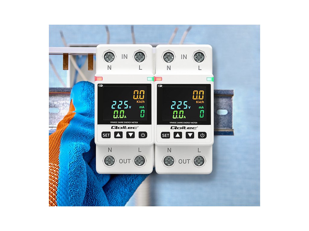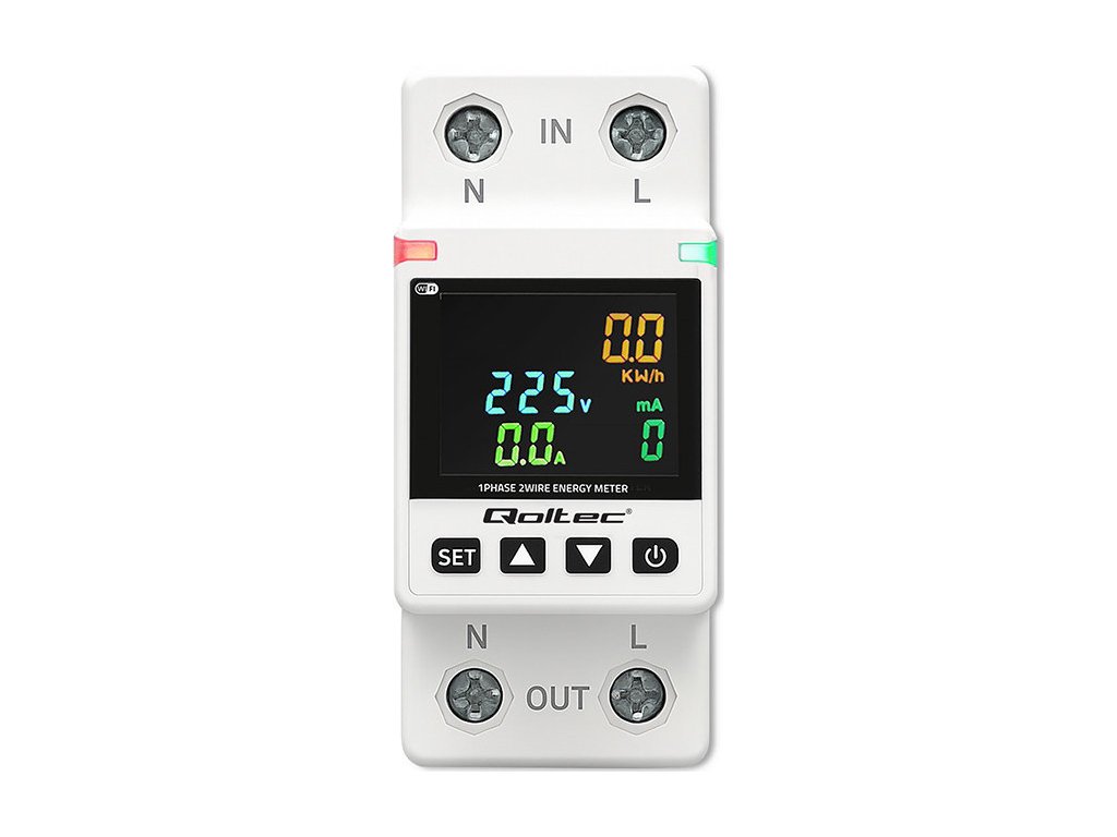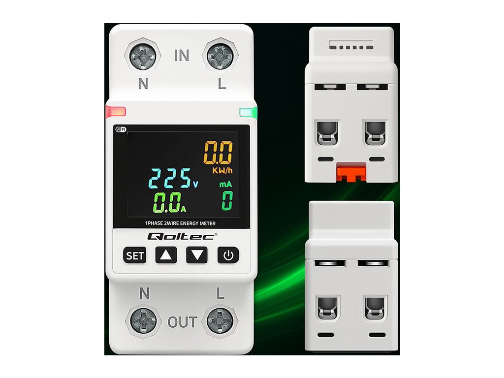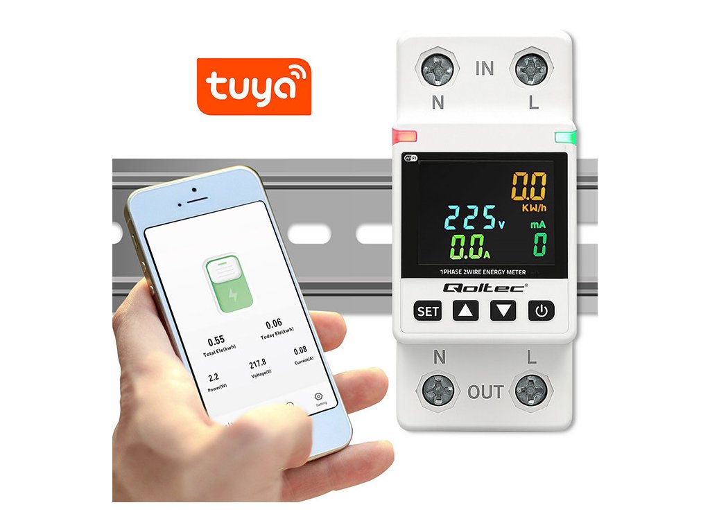 Jednofázový elektronický wattmetr Qoltec | měřič spotřeby energie | DIN35 | Dálkové ovládání | Historie měření | Wi-Fi | TUYA | Inteligentní život