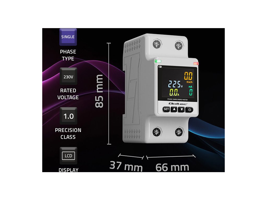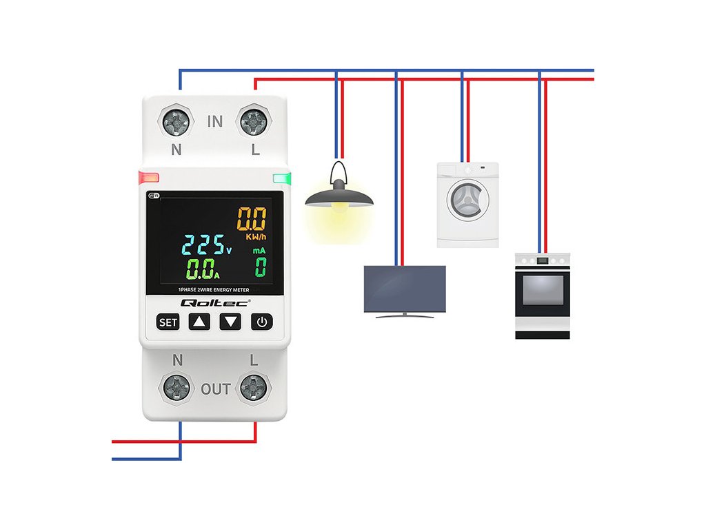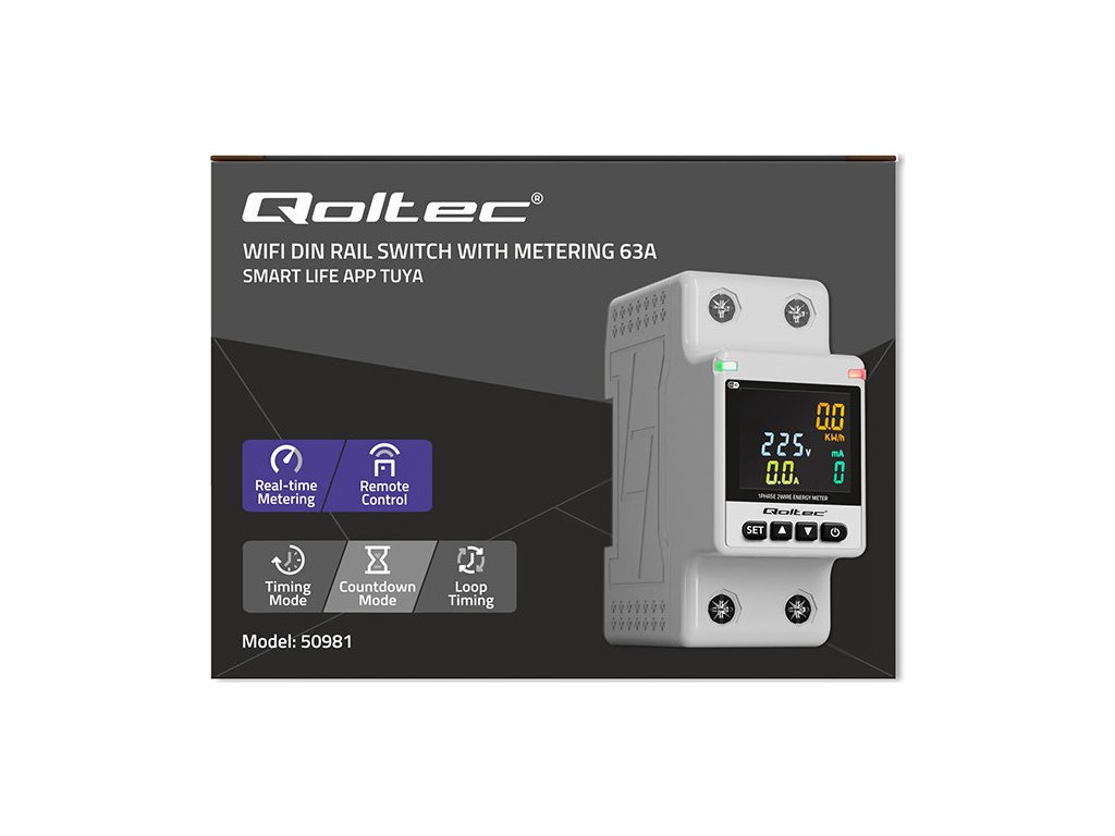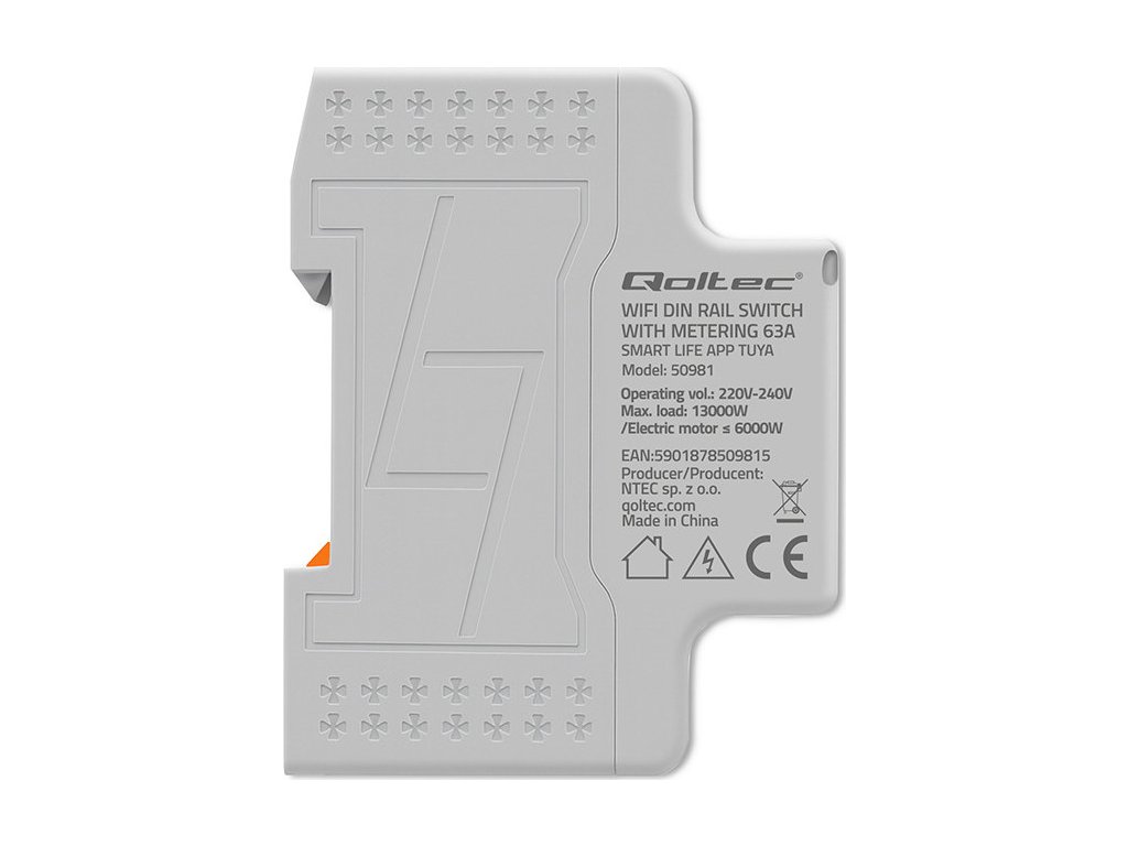 Jednofázový elektronický wattmetr Qoltec | měřič spotřeby energie | DIN35 | Dálkové ovládání | Historie měření | Wi-Fi | TUYA | Inteligentní život