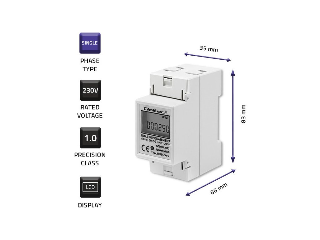 - Vyhovuje normám IEC 62053-21 a DIN EN50022 ,