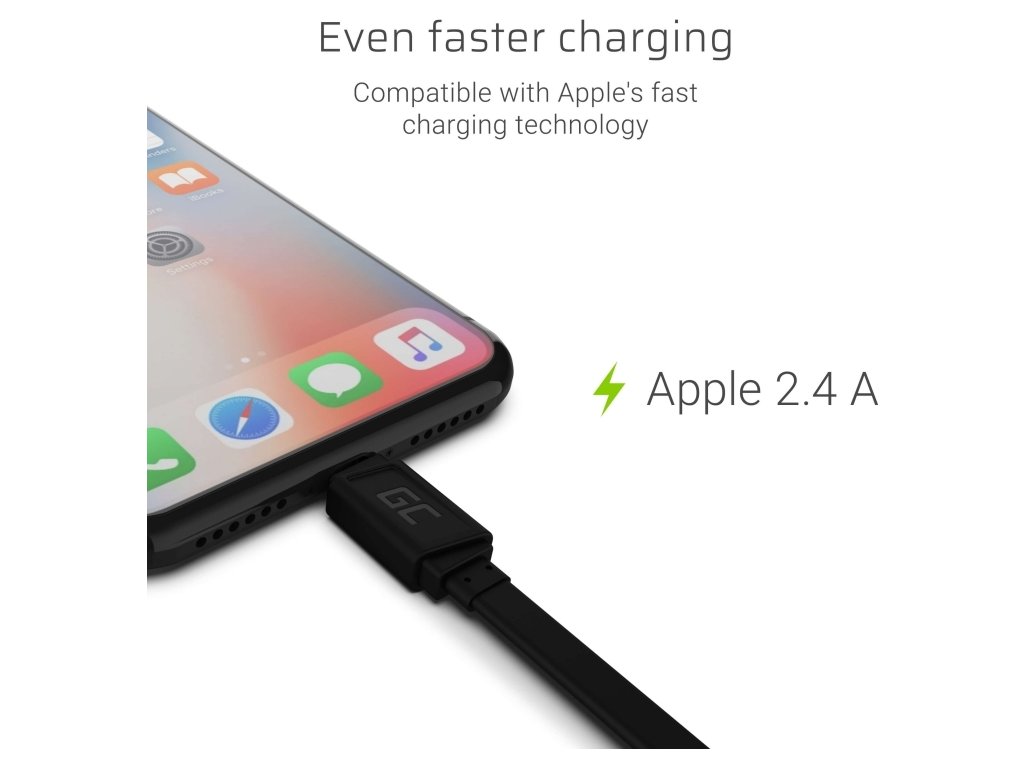 Kabel GCmatte byl navržen tak, aby zajistil co nejrychlejší nabíjení vašeho zařízení. Podpora technologie rychlého nabíjení Apple 2.4A vám ušetří až 1 hodinu nabíjení. Kabel kompatibilní s rychlým nabíjením hraje stejně důležitou roli jako samotná nabíječka nebo protokol telefonu.