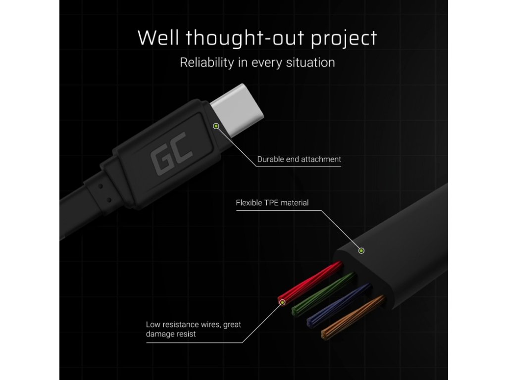 Kabel GCmatte je navržen tak, aby poskytoval nejrychlejší možné nabíjení vašeho zařízení.