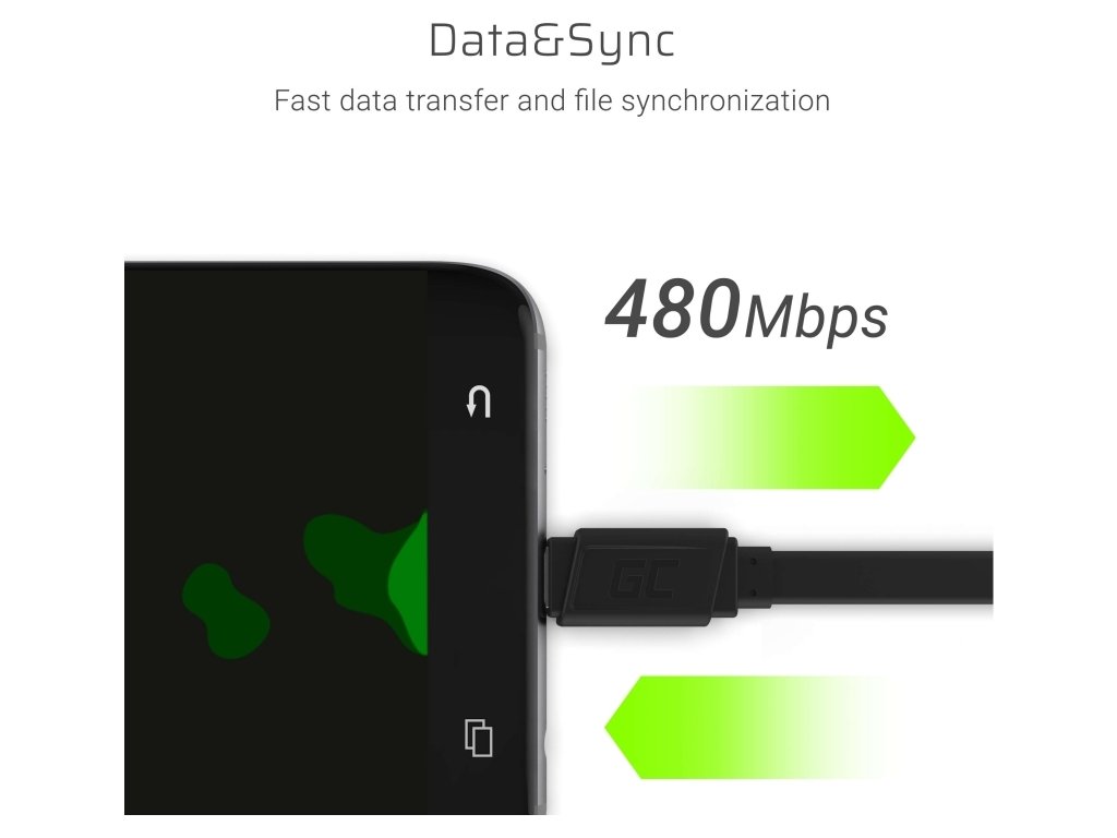Kabel Green Cell také poskytuje rychlost přenosu dat 480 Mbps - přenos až 100 hudebních skladeb za pouhých 5 sekund.