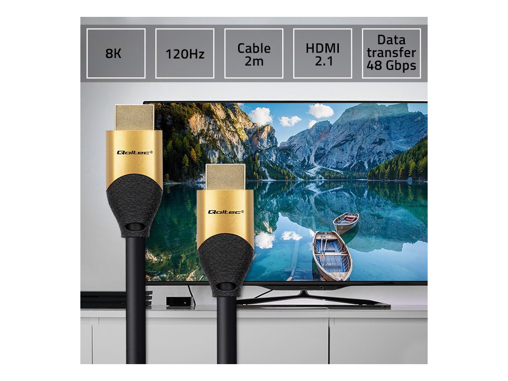 S jedním kabelem Qoltec HDMI v nejlepším standardu Ultra High speed 2.1 na trhu můžete připojit například televizor s konzolí nebo Blu-ray přehrávač nebo notebook s projektorem. Už se nemusíte starat o dostatek portů na televizoru nebo herní konzoli. Tento jeden kabel je zodpovědný za přenos multimédií v kvalitě 8K při šířce pásma 48 Gb/s .