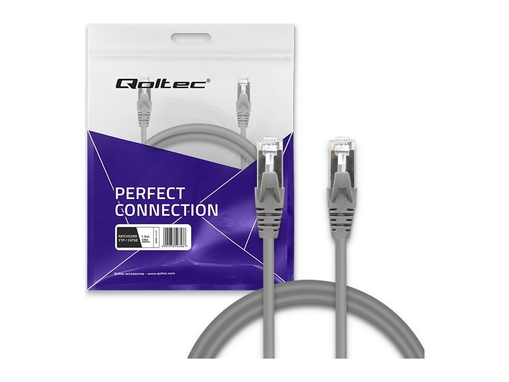 Qoltec CAT5e FTP kabel, 1,5 m dlouhý, stíněný, navržen tak, aby podporoval rychlost přenosu dat až 10 gigabitů za sekundu v ethernetových sítích . Vhodné pro aplikace vyžadující vysoké rychlosti přenosu dat, jako jsou přenosy souborů, streamování videa, videokonference vyžadující velkou šířku pásma sítě . Používá se zejména v ICT sítích, počítačových sítích, pro napájení, přenos dat a v monitorovacích systémech.