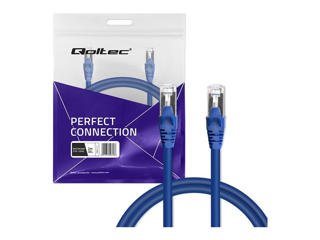 Qoltec CAT6 FTP kabel , 2 m dlouhý , stíněný, navržen tak, aby podporoval rychlost přenosu dat až 10 gigabitů za sekundu v ethernetových sítích . Vhodné pro aplikace vyžadující vysoké rychlosti přenosu dat, jako jsou přenosy souborů, streamování videa, videokonference vyžadující velkou šířku pásma sítě . Používá se zejména v sítích ICT, počítačových sítích, pro přenos energie, přenos dat a monitorovací systémy.
