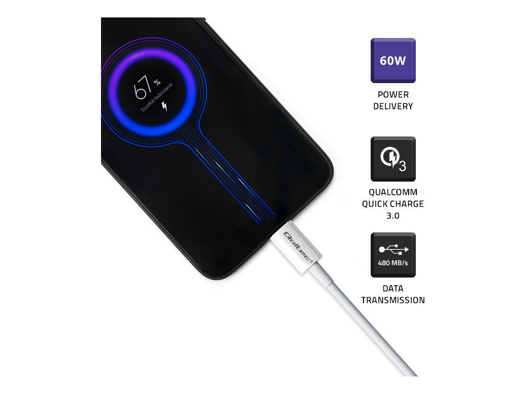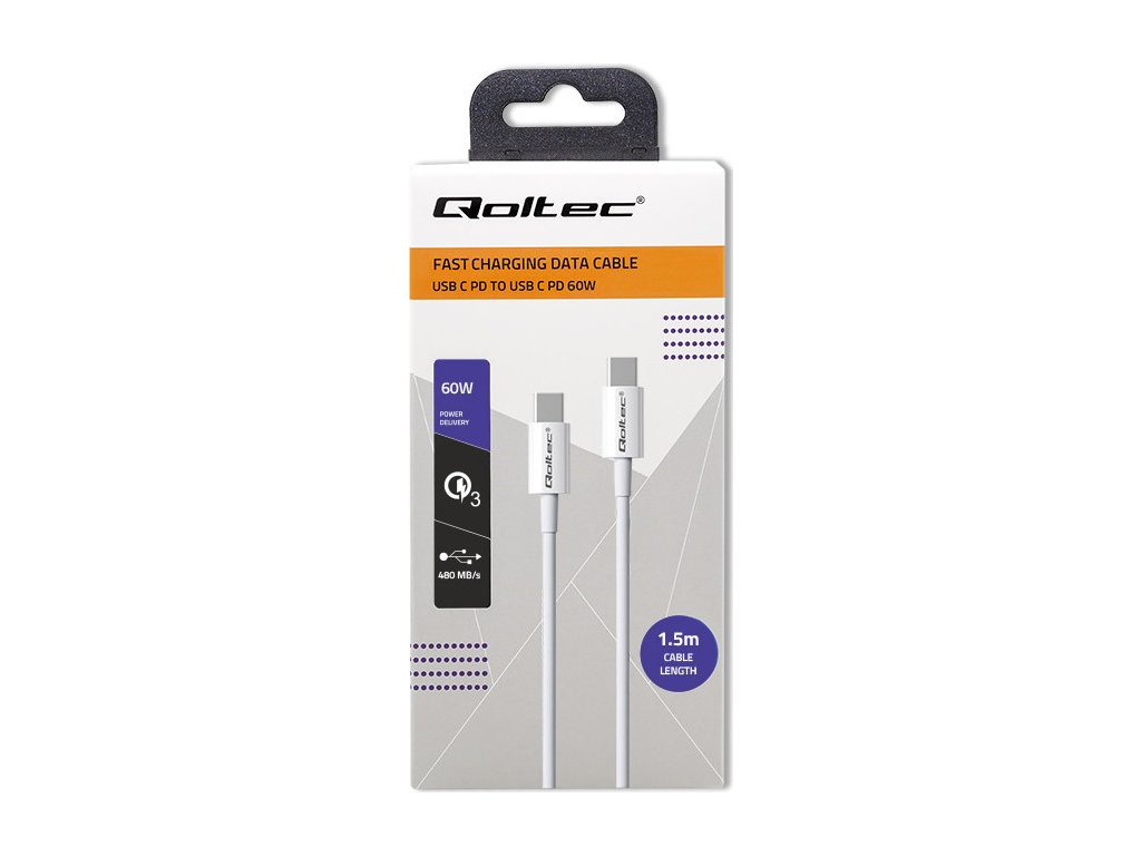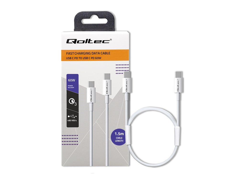 Kabel USB-C 2.0 | USB-C 2.0 60W | QC 3.0 | PD | 1.5m | bílý