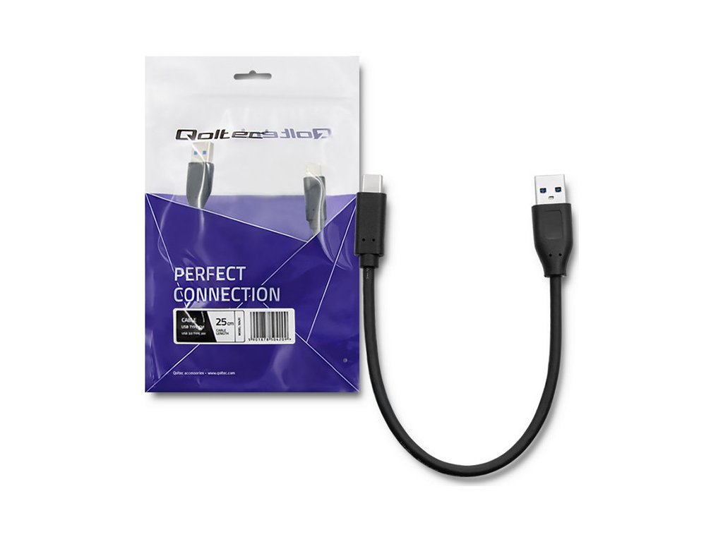 Kvalitní kabel USB 3.1 typ C samec / USB A samec o délce 25 cm slouží k připojení zařízení nebo zdrojů, které mají nový konektor USB 3.1 typu C k zařízením s rychlou zásuvkou USB 3.0. (kompatibilní is USB 2.0 a staršími verzemi) notebooků, počítačů, fotoaparátů, nabíječek atp. USB Type-C přenáší data vyšší rychlostí než jeho předchozí verze a má nový typ konektorů a zástrček. Jeho nová zástrčka je mnohem tenčí, užší a symetrická, což umožňuje oboustranné zasunutí kabelu do zásuvky zařízení, takže při připojování zařízení k adaptéru nemusíte dávat pozor na boční stranu. Nejnovější standard umožňuje současné nabíjení, přenos zvuku a obrazu i synchronizaci dat.