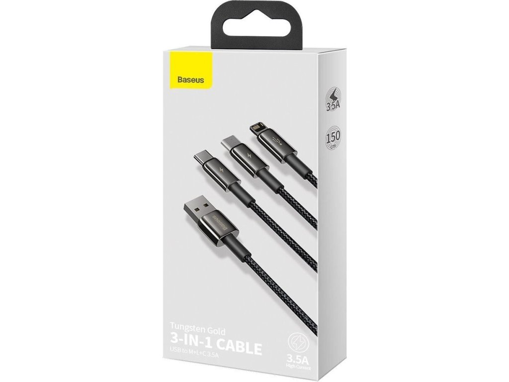 Kabel USB kabel 3v1 - USB-C, Lightning, micro USB 1,5m Baseus Tungsten Gold CAMLTWJ-01 až 3,5A