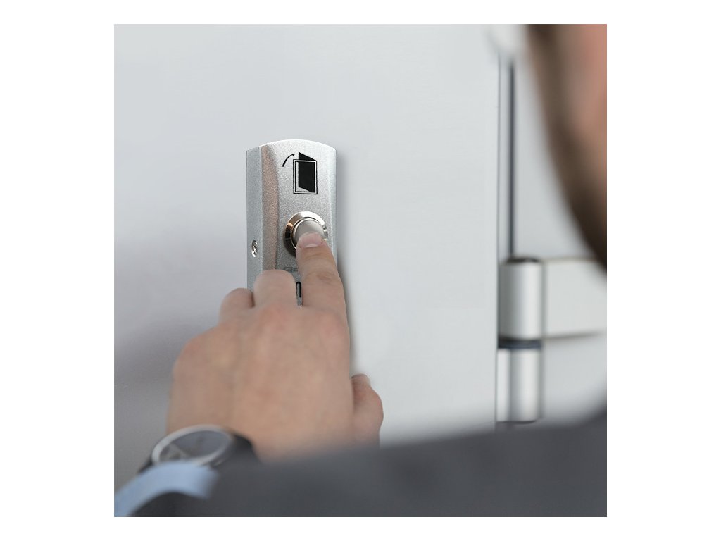 Základním prvkem zabezpečovacího systému je výstupní tlačítko . Je třeba opustit chráněnou místnost, zabezpečenou a přístupnou pouze oprávněným osobám.