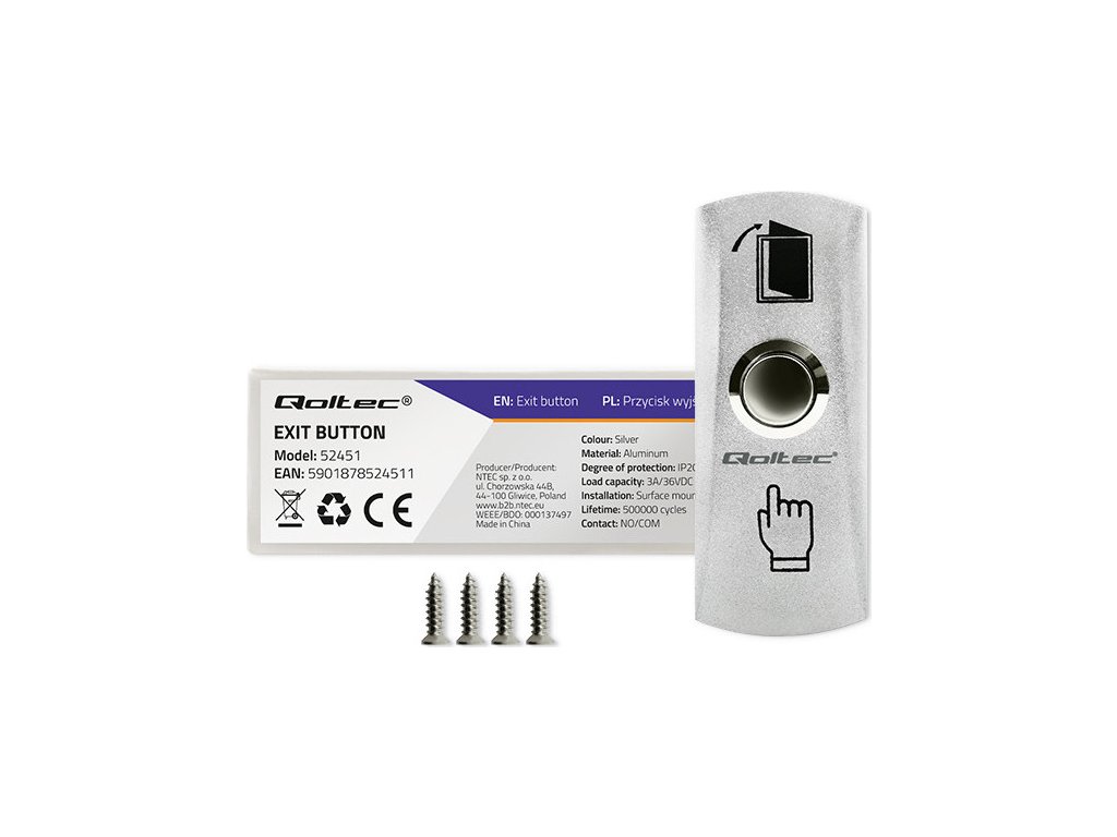 Výstupní tlačítko Qoltec se snadno používá a funguje s interkomem, videovrátným a kombinovaným zámkem .