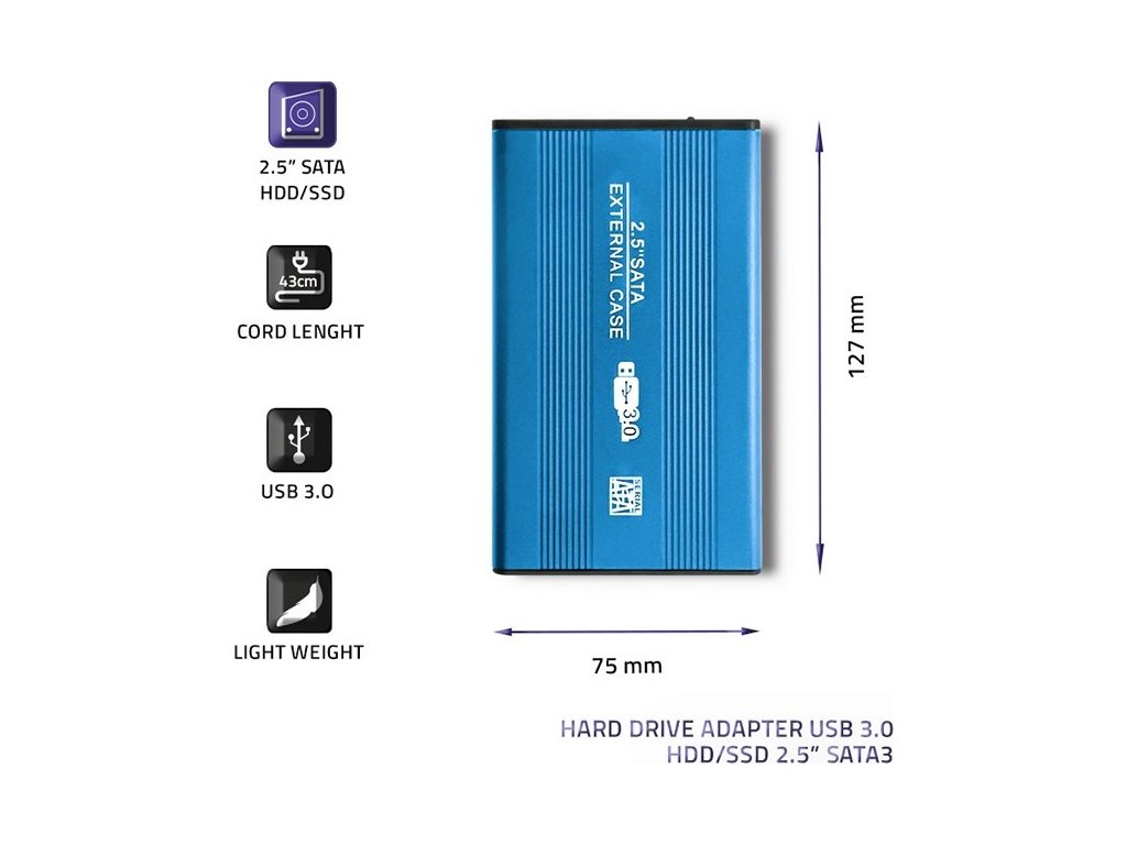 Kryt na pevný disk HDD/SSD 2.5" SATA3 | USB 3.0 | modrý