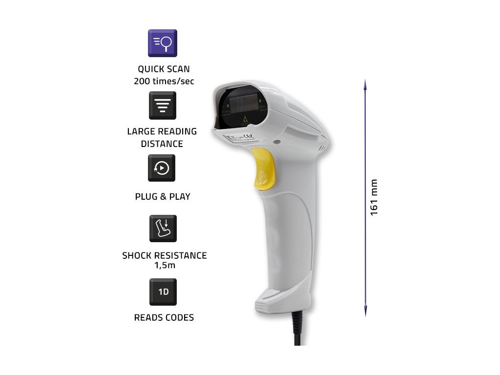 Laserová 1D čtečka čárových kódů | USB | Bílá