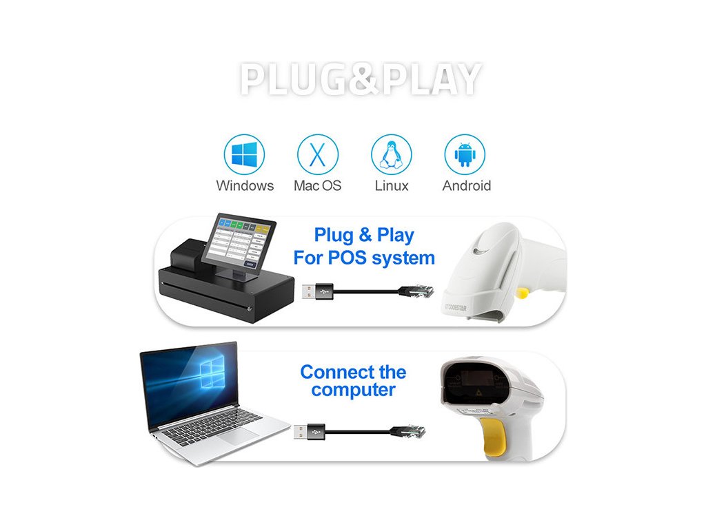 - Plug&Play rozhraní - zaručuje okamžitý provoz snímače čárových kódů bez potřeby instalace dodatečného softwaru,