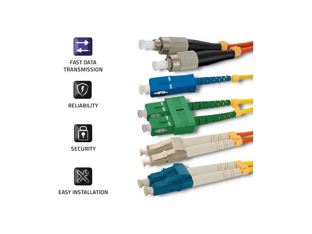 Další informace: | Jednoduchá instalace a obsluha optického vlákna, vysoká rychlost přenosu dat. LSZH - vnější nehořlavý povlak kabelu, který při p |