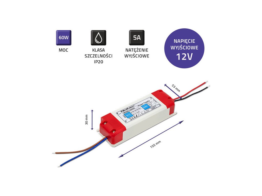 LED IP20 spínaný zdroj | 60W | 12V | 5A
