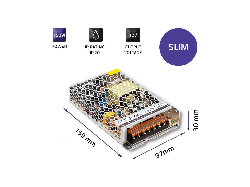 LED spínaný zdroj IP20 | 150W | 12V | 12,5A | Štíhlý