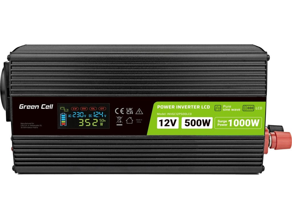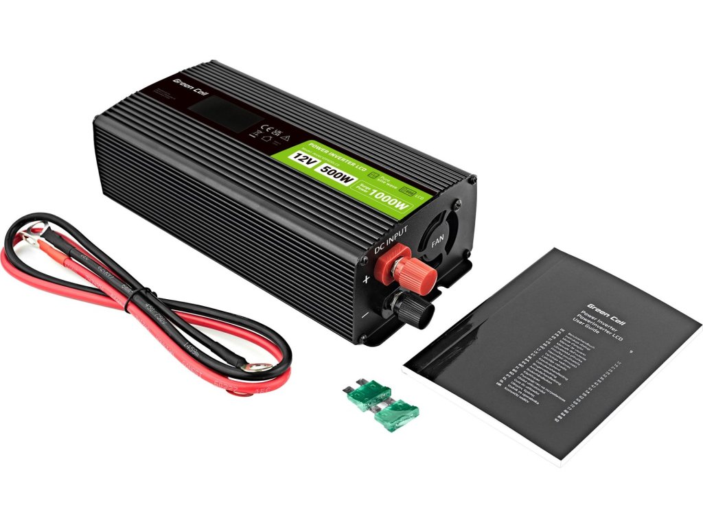 Měnič napětí 12V | 500W/1000W | LCD | čistá sinusoida