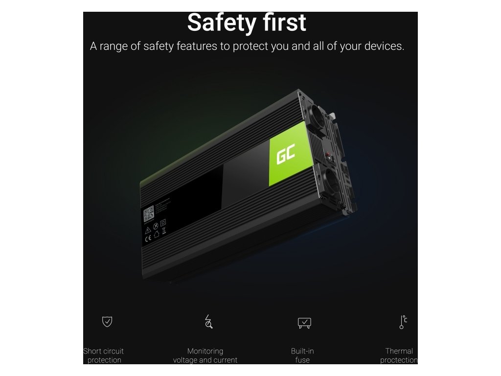 Pro zajištění maximální bezpečnosti jsou všechny invertory Green Cell vybaveny vyměnitelnými pojistkami , které poskytují ochranu měniče a připojených zařízení. Výměna pojistky je velmi jednoduchá a neměla by způsobit žádné problémy. Ke každému měniči jsou zahrnuty náhradní pojistky , aby se zajistila bezpečnost při používání a co nejdelší životnost zařízení.