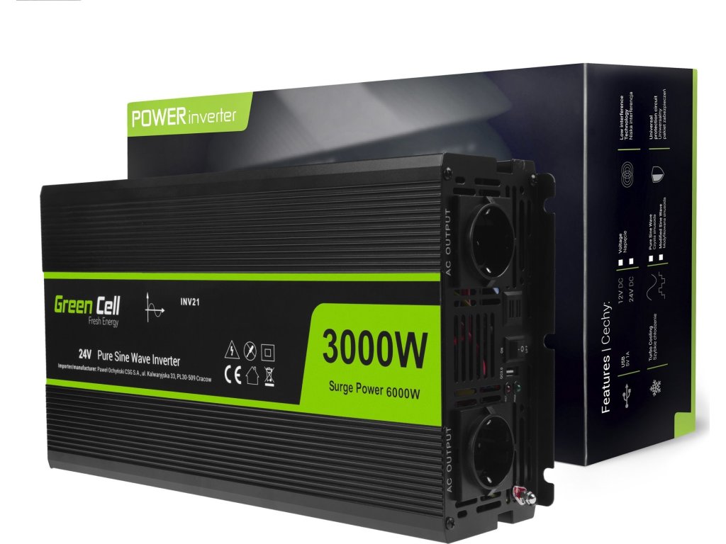 Měnič napětí 24V na 230V čistá sinusoida 3000W
