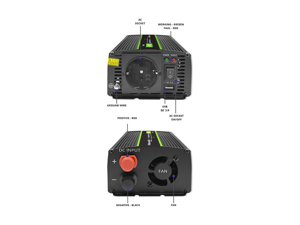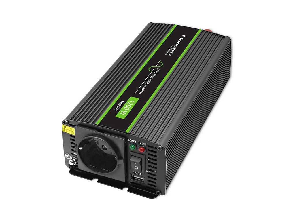 Invertor Qoltec je čistý sinus , produkuje stejný proud jako v zásuvce 230V , čímž zajišťuje bezpečnost všech připojených zařízení. Skvělá bude jak při výpadku proudu , tak i při cestování , když nemáme přístup k zásuvce.