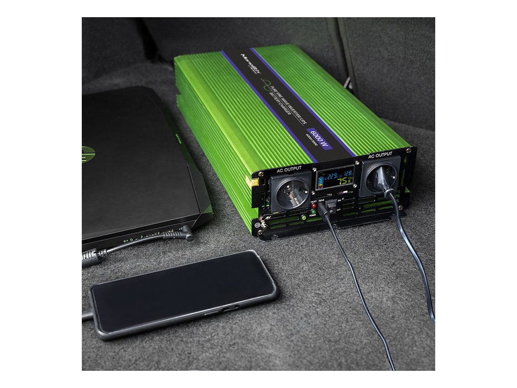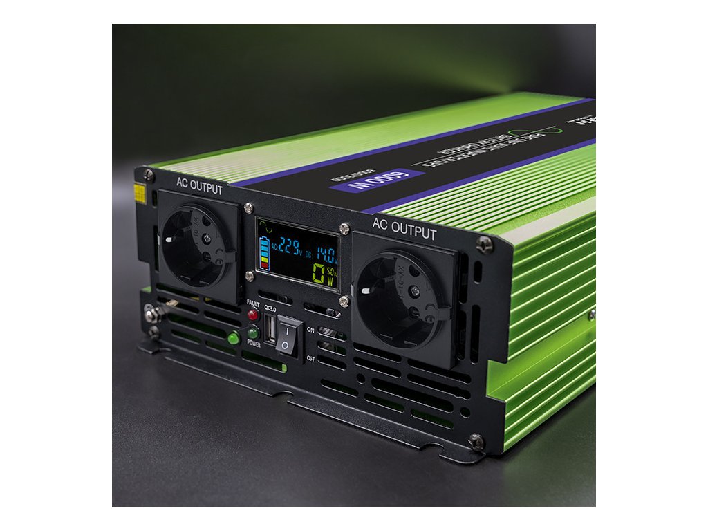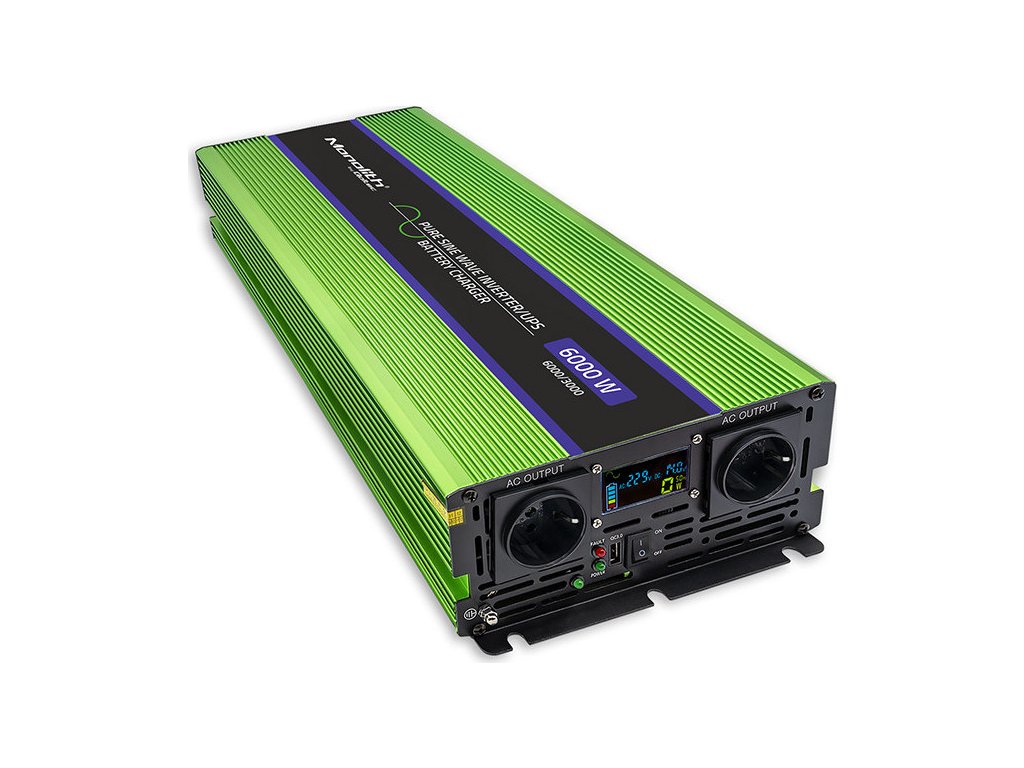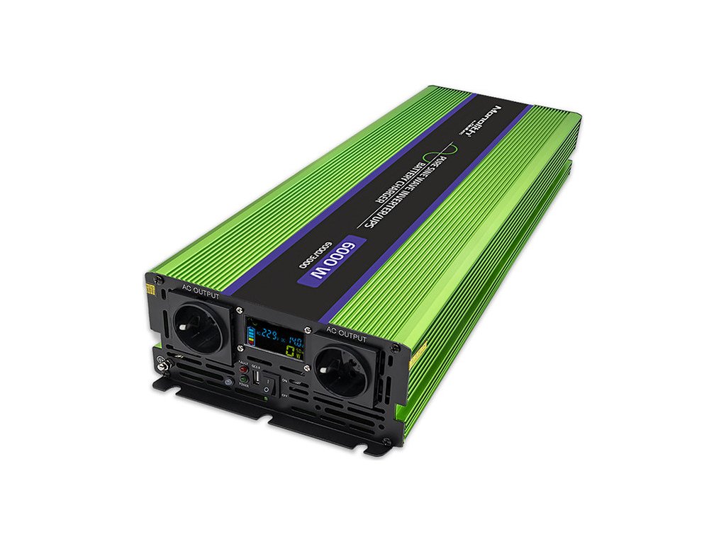 Měnič napětí | nabíjení baterie | UPS | 3000W | 6000W | 12V až 230V | Čistý sinus | LCD