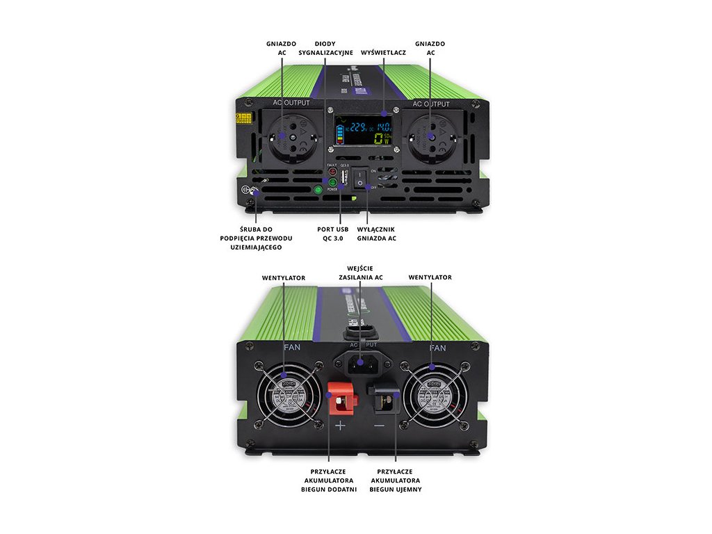Invertor Qoltec je čistý sinus , produkuje stejný proud jako v zásuvce 230V , čímž zajišťuje bezpečnost všech připojených zařízení. Skvělá bude jak při výpadku proudu , tak i při cestování , když nemáme přístup k zásuvce.