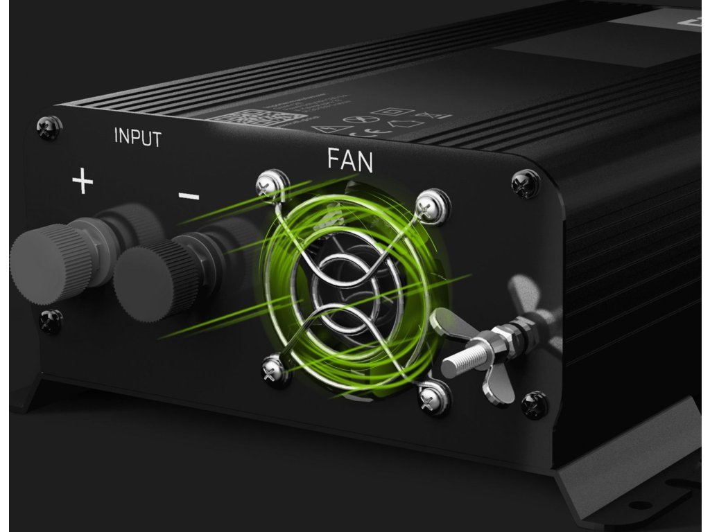 Na zadní straně měniče je ventilátor, který zajišťuje správné chlazení zařízení.