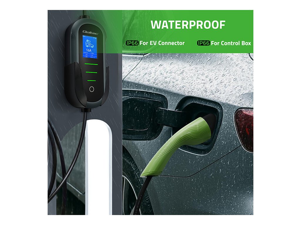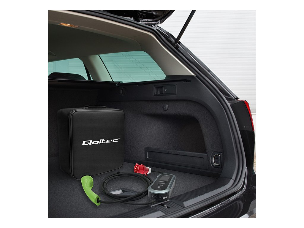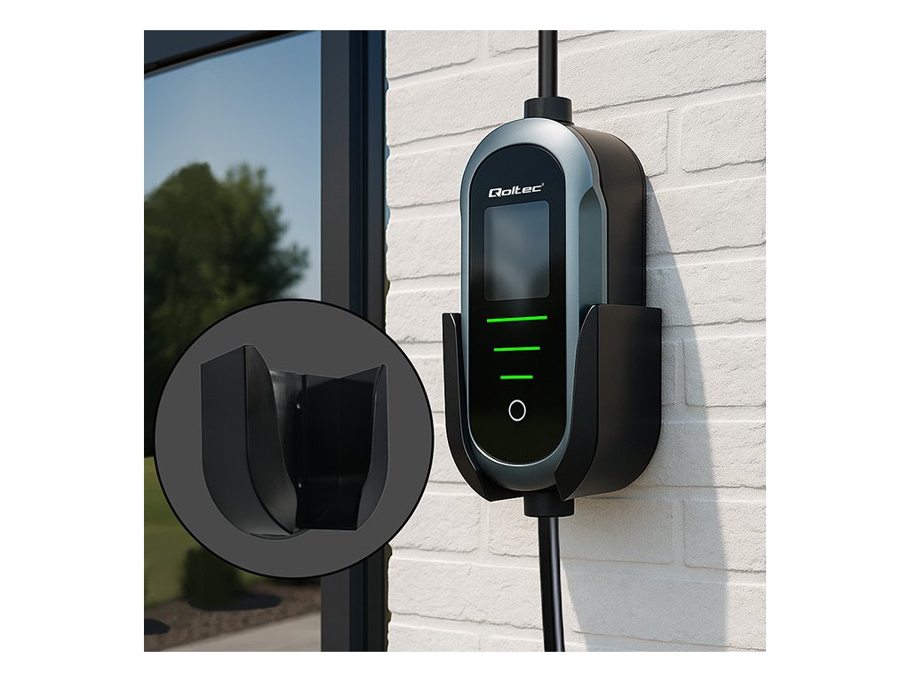 Mobilní nabíječka pro elektromobily Qoltec je ideálním řešením pro domácí i cestovní použití. Lze jej namontovat na stěnu v garáži nebo venku – stačí si vybrat místo v blízkosti vozidla a zdroj napájení 400 V vybaven 32A CEE zástrčkou. Další výhodou je 7metrový nabíjecí kabel s ergonomickou zástrčkou typu 2, která zajišťuje snadné používání a snadné připojení k vozidlu. Pro úplnou bezpečnost doporučujeme použít diferenciální jistič typu B, který účinně chrání před úrazem elektrickým proudem a přetížením systému.