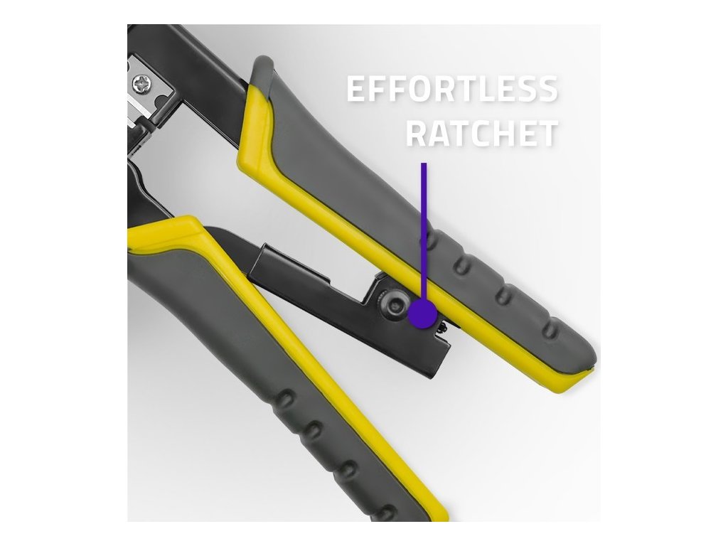 Krimpovačka na stříhání a krimpování ethernetových kabelů je nástroj, který zaručuje pevné a odolné spojení . Náš modulární krimpovač je investicí do pevných, moderních a efektivních kabelových spojení. Velmi užitečný při odstraňování izolace z kabelů, má vestavěnou čepel pro řezání kabelů pro usnadnění přípravy drátů před krimpováním. Bezpečné uvolnění snižuje riziko zranění.