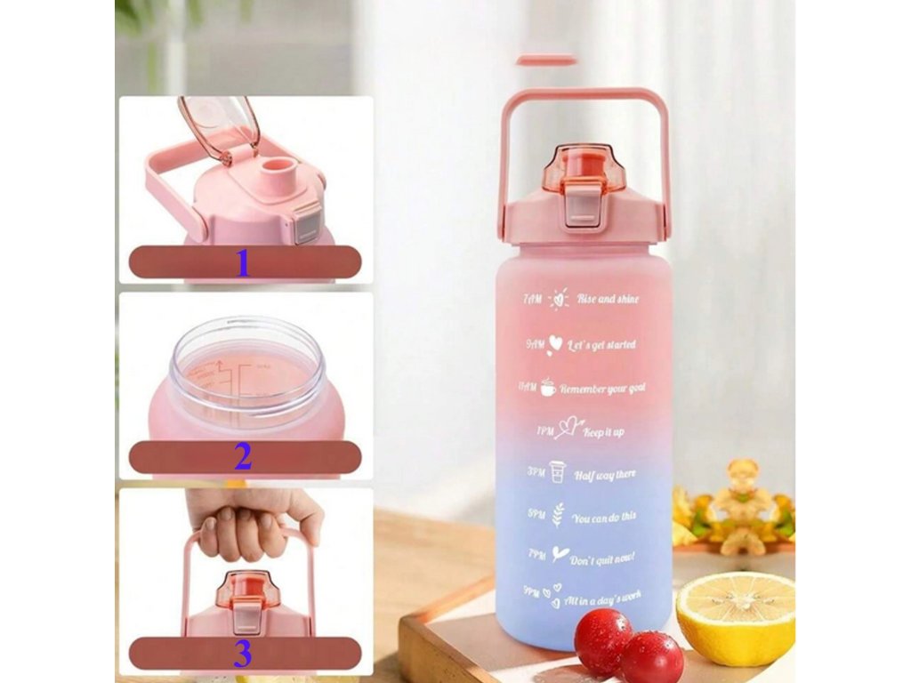 S velkou kapacitou 2 litry a pohodlným designem láhev zajistí, že budete vždy správně hydratováni, ať jste kdekoli. Dokonalé uchycení zajišťuje, že uzávěr zůstává těsný a stále umožňuje snadné otevření lahvičky, dokonce i jednou rukou.