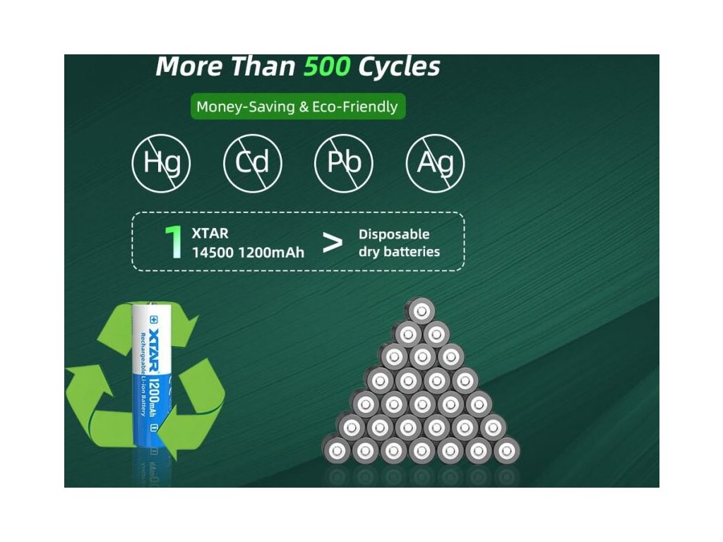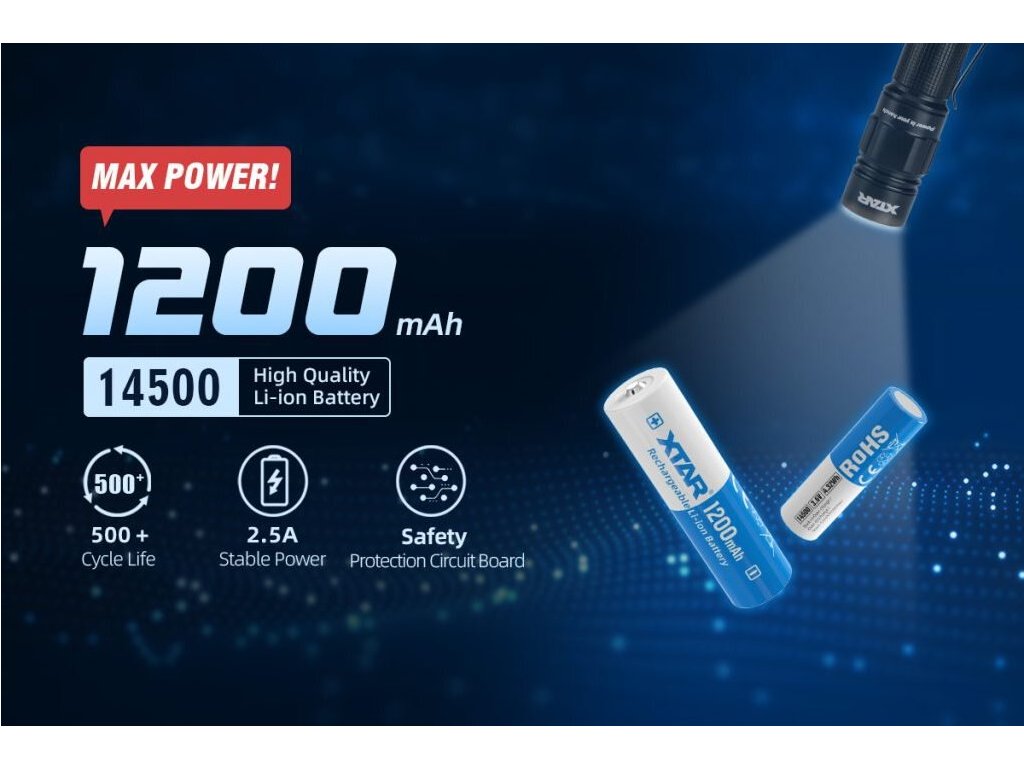 Akumulátor XTAR 14500 je kvalitní Li-ion akumulátor, který je vybaven ochrannou elektronikou pro ochranu před samovybíjením, přebitím a zkratem. S kapacitou 1200mAh a napětím 3,6V je ideální pro širokou škálu elektronických zařízení, jako jsou ruční LED baterky a jiná zařízení, která vyžadují spolehlivý a efektivní zdroj energie.