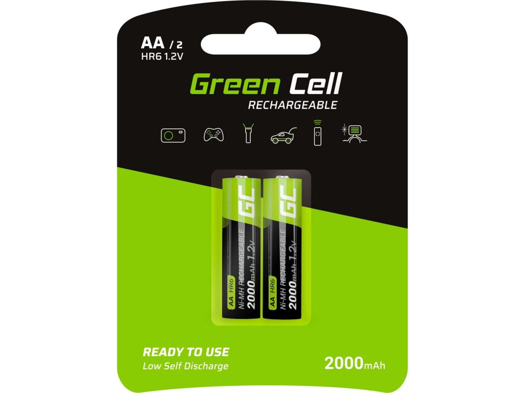 Nabíjecí baterie Green Cell se dodávají nabité, takže je můžete použít okamžitě po vyjmutí z balení. Není třeba je nejprve nabít. Tím se předchází degradaci baterie nebo ztrátě kapacity.