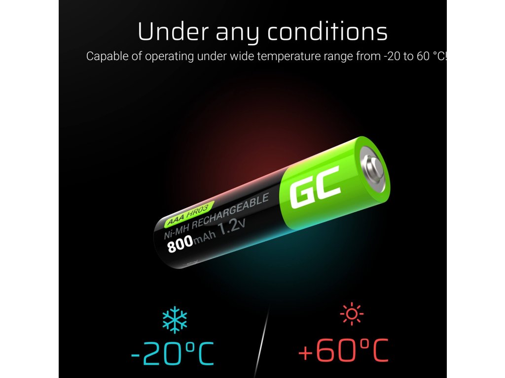 Použití moderních materiálů a pokročilé výrobní technologie výrazně zvyšuje životnost baterií. Baterie Green Cell poskytují až 3 letý bezproblémový provoz dokonce i při velkých zatíženích, a kromě toho si udrží 85% uložené energie i po 12 měsících skladování. Jsou také uzpůsobeny pro práci v extrémních teplotách od -20 do 60 °C s vysokou účinností!