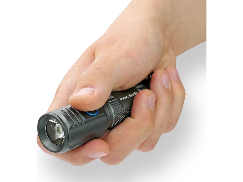 Svítilna everActive FL-2000R se mimořádně pohodlně používá - je praktická, vyrobena z odolného hliníku, který se vyznačuje zvýšenou odolností.