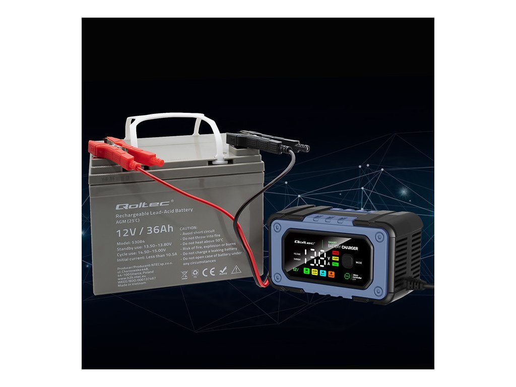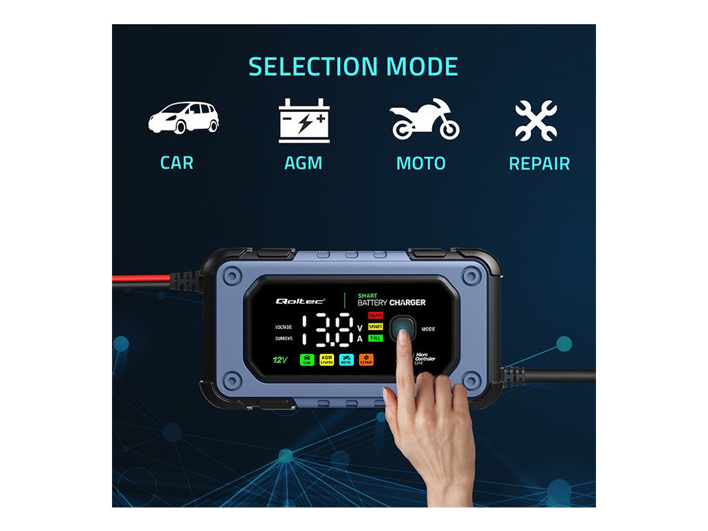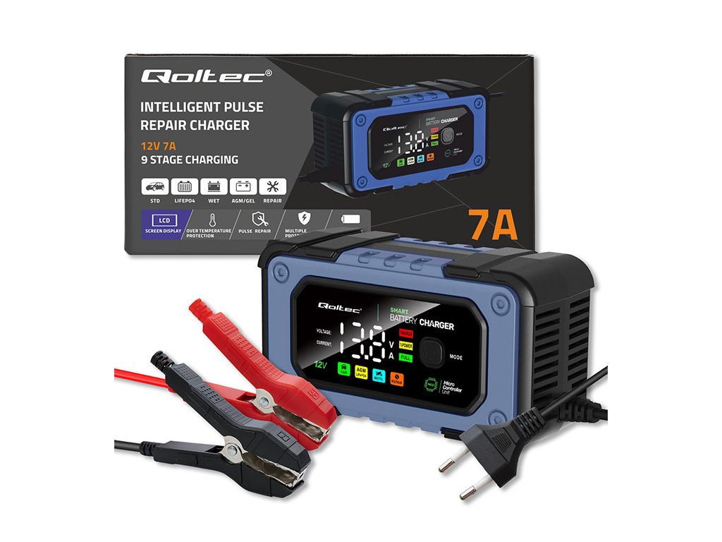 Nabíječka Qoltec se 4 provozními režimy, přizpůsobená různým typům baterií