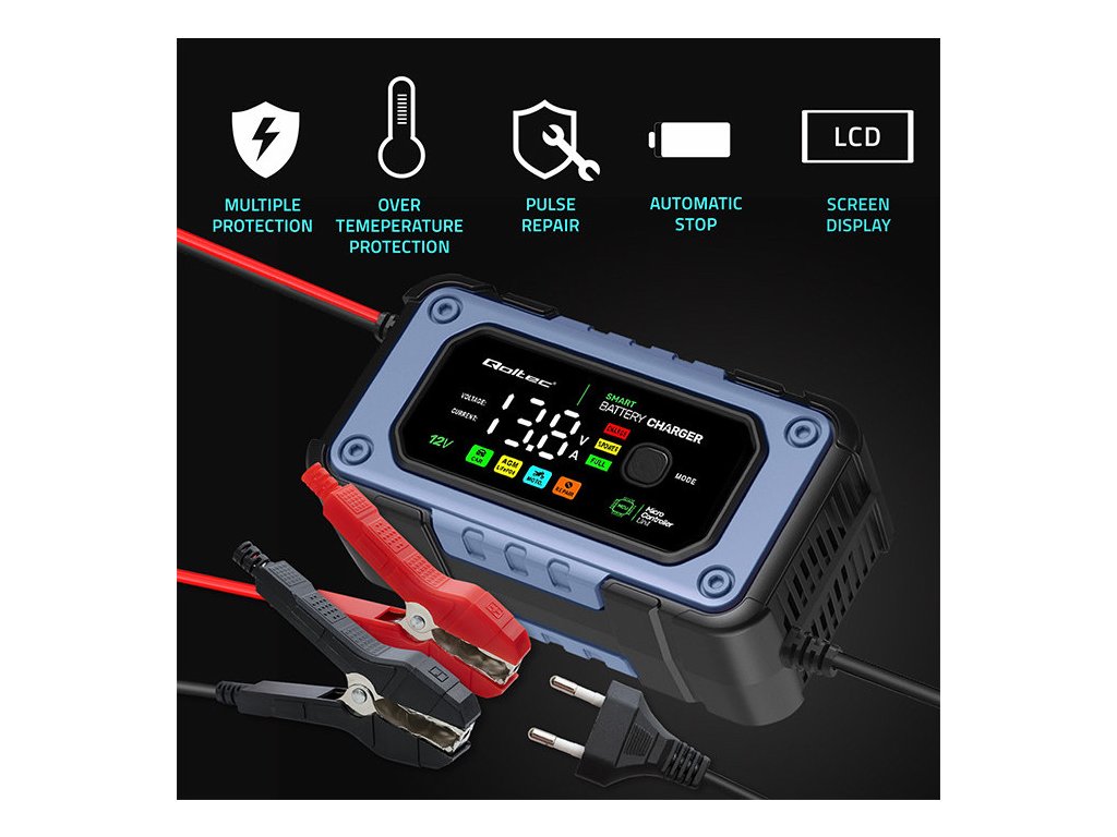 Nabíječka Qoltec je mikroprocesorová s přesností nabíjení , nabízí 4 provozní režimy , což značně zjednodušuje proces nabíjení, jedna nabíječka stačí pro různé typy baterií a podporuje: