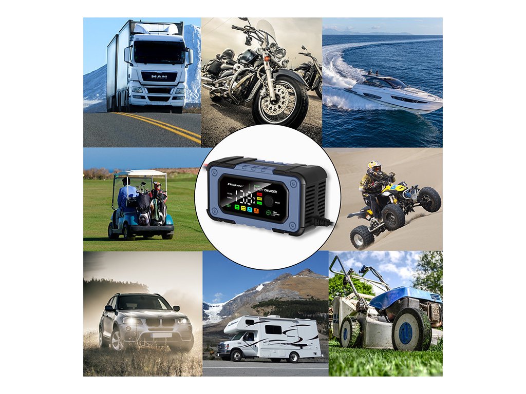 - Auto režim pro GEL, SLA, WET, DEEP CYCLE, EFB a vápníkové baterie,