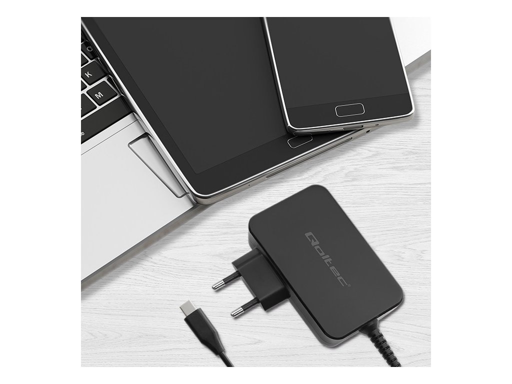 Nabíječka Qoltec je vybavena nejnovější nabíjecí technologií GaN, která zahrnuje použití nového polovodičového materiálu , nitridu galia . V závislosti na typu nabíjeného zařízení si nabíječka zvolí vhodné napětí a proud v závislosti na parametrech baterie , čímž ji ochrání před přehřátím.