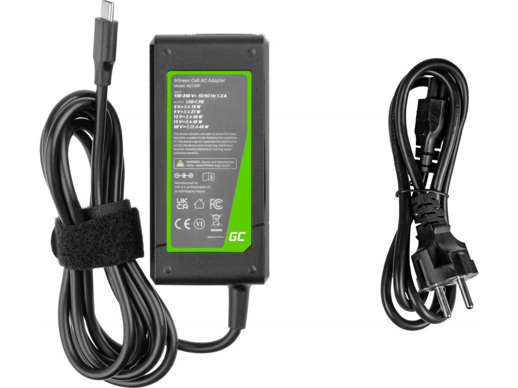 Nabíječka Green Cell je ideální, pokud selhal starý zdroj napájení nebo potřebujete druhou nabíječku. do kanceláře. Díky kabelu USB-C můžete nabíjet mnoho různých zařízení od notebooků až po telefony, tablety nebo herní konzole Nintendo Switch s jedním napájecím adaptérem.