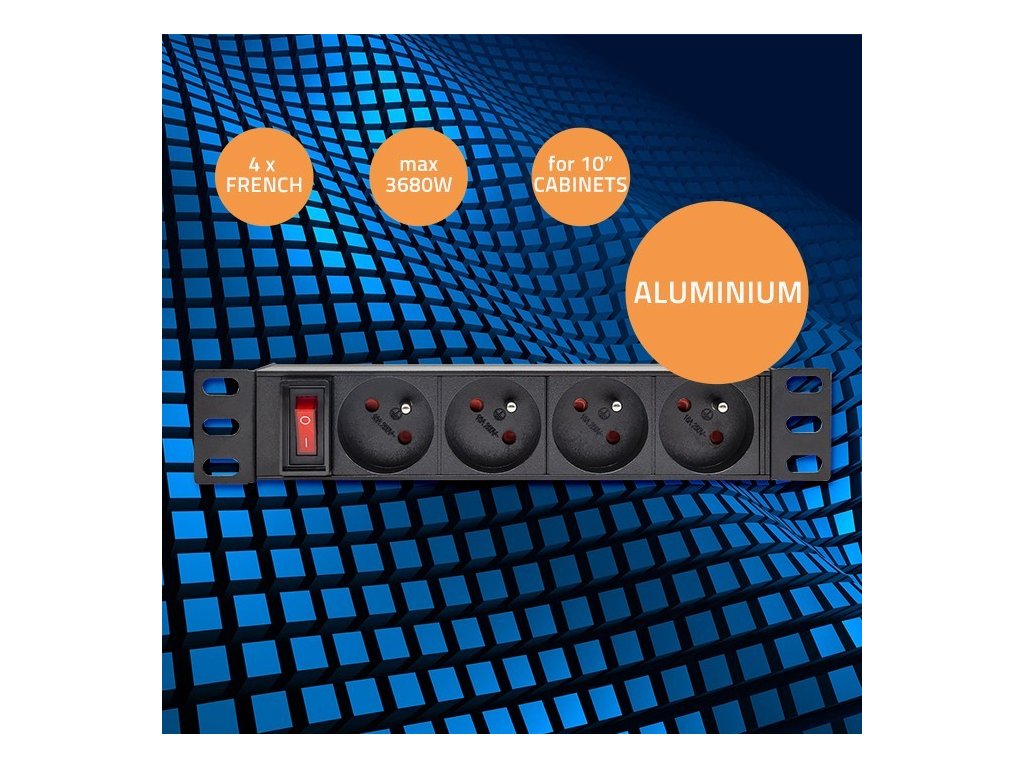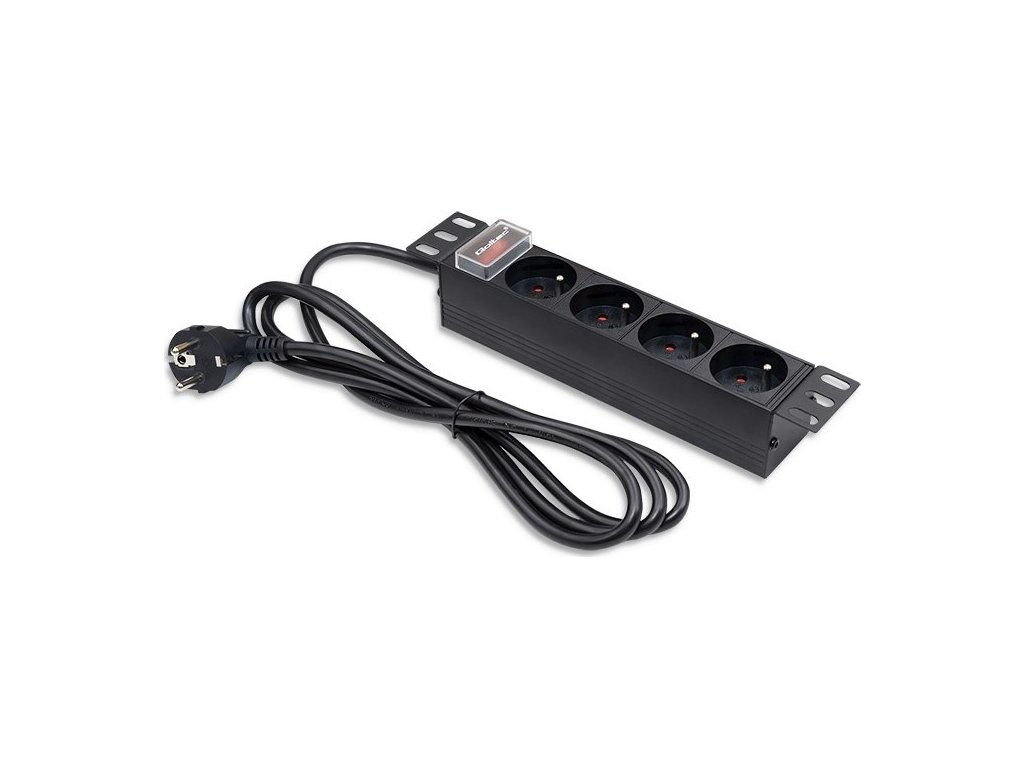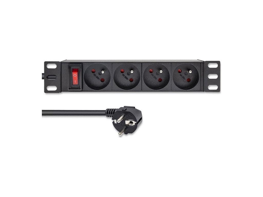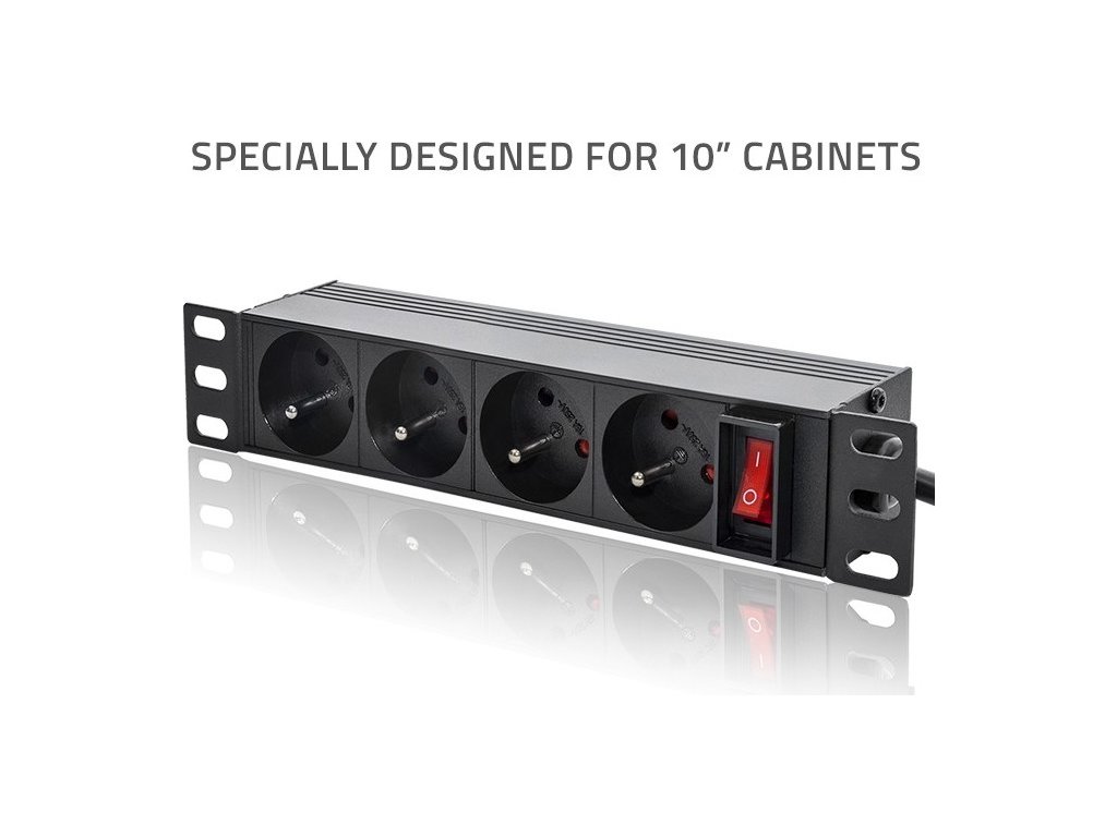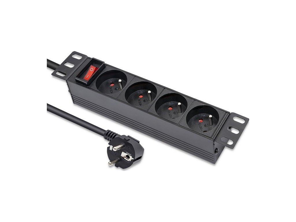 Napájecí lišta PDU pro RACK 10'' Aluminium | 1U | 16A | 4 x SCHUKO | 1,8 m