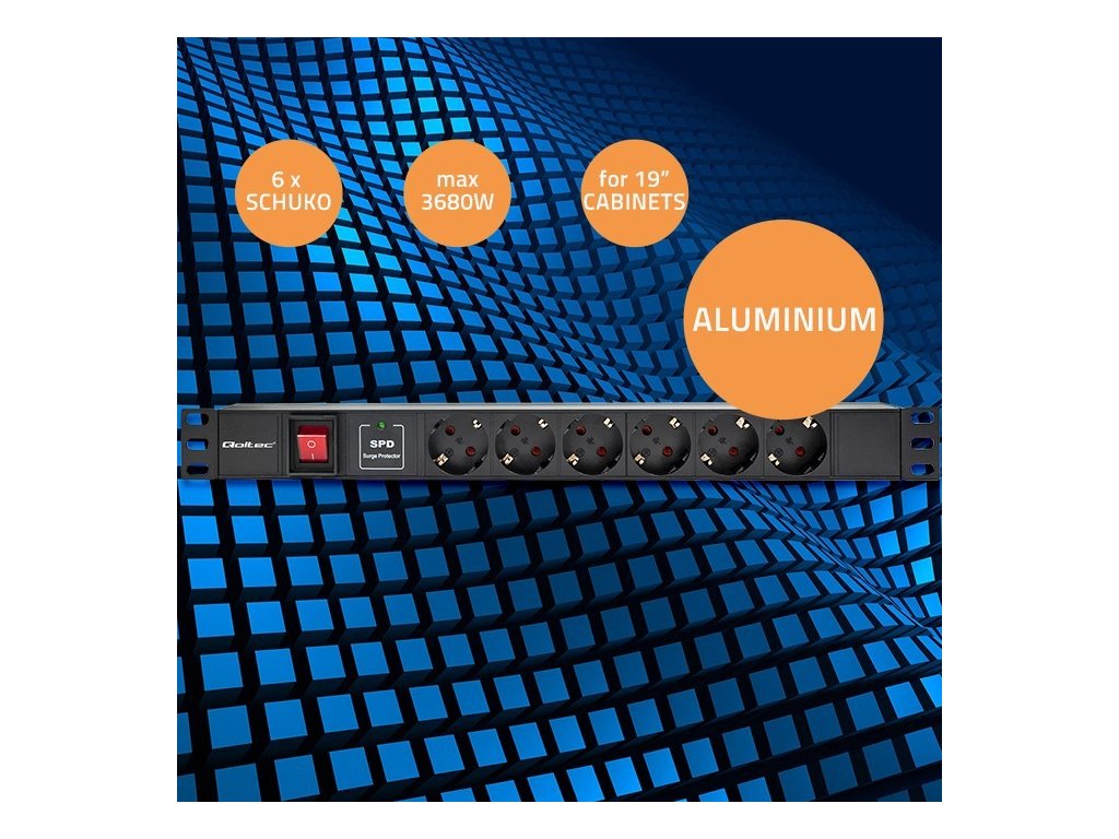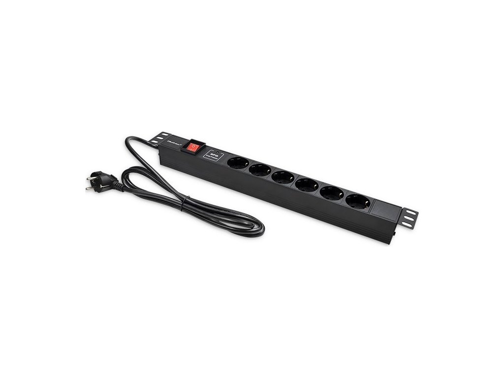 Napájecí lišta PDU pro RACK 19'' Aluminium | 1U | 16A | 6xSCHUKO | 1,8 m