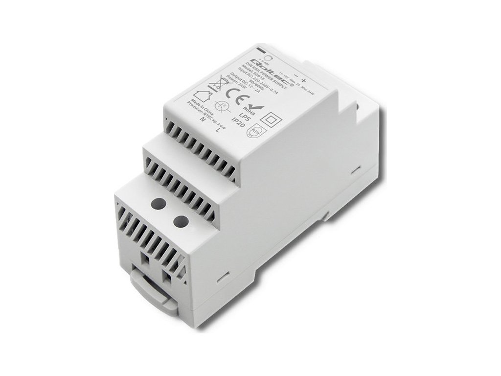 Napájecí zdroj na DIN lištu | 24W | 12V | 2A | Šedá