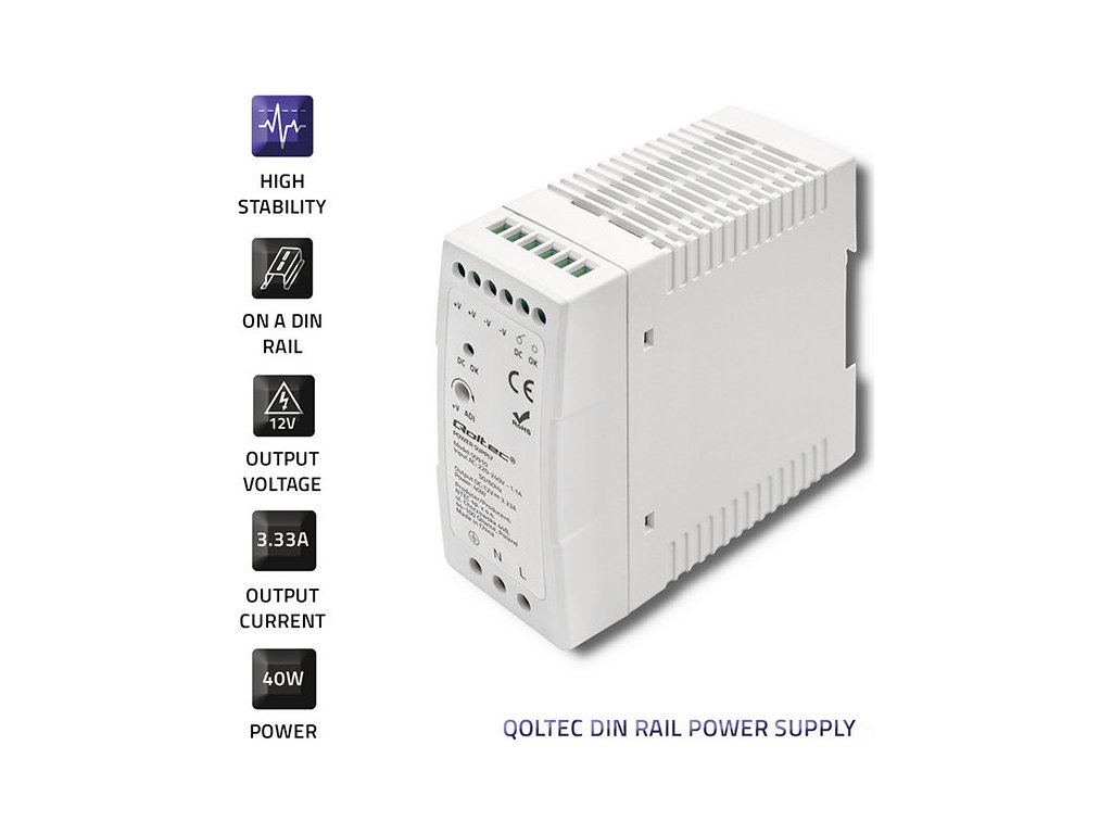 Zdroje Qoltec na DIN lištu jsou užitečnými prvky automatizačních systémů, řízení strojů, osvětlovací techniky a průmyslové elektroniky, kde je důležitá velikost napájecích zařízení a jejich přizpůsobení prostředí.