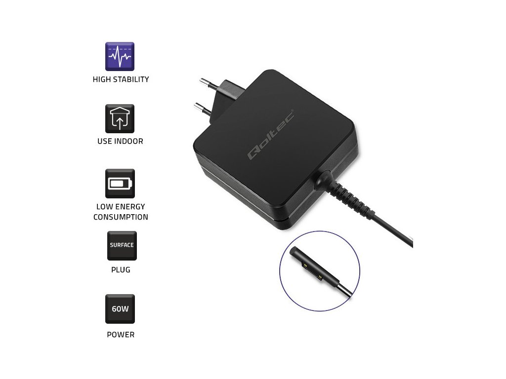 Je pro vás spolehlivost rozhodující? Vyberte si vyhrazený napájecí zdroj pro Microsoft Surface Pro 5/6 60W, 15V, 4A . Ideální pro domácí nebo kancelářské použití jako hlavní nebo doplňkový zdroj napájení. Bez ohledu na to, zda potřebujete pracovat, studovat, hrát si nebo cestovat, napájení notebooku Qoltec zajistí plynulý a bezpečný chod vašeho zařízení. Je vyroben z nejkvalitnějších materiálů a použité technologie umožňují nízkou spotřebu energie a vysokou účinnost .