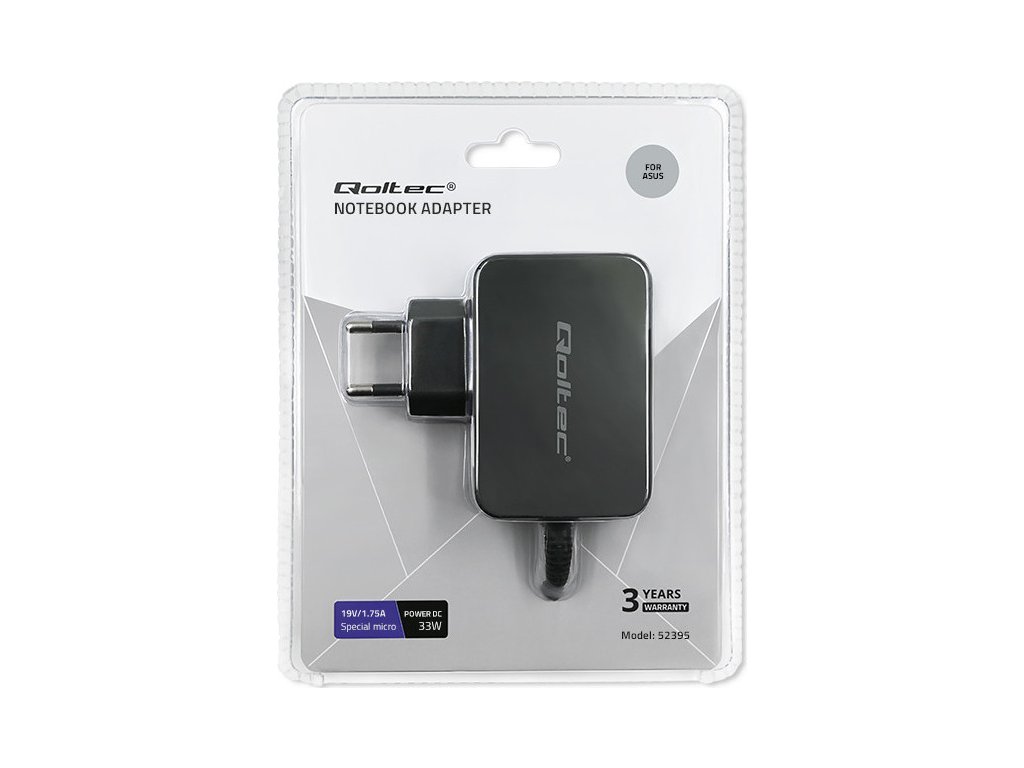 Je pro vás spolehlivost rozhodující? Vyberte si vyhrazený napájecí zdroj pro Asus 33W, 19V, 1,75A s pravoúhlou zástrčkou s kolíkem 6,4x2,2 ve středu . Ideální pro domácí nebo kancelářské použití jako hlavní nebo doplňkový zdroj napájení. Bez ohledu na to, zda potřebujete pracovat, studovat, hrát si nebo cestovat, napájení notebooku Qoltec zajistí plynulý a bezpečný chod vašeho zařízení. Je vyroben z nejkvalitnějších materiálů a použité technologie umožňují nízkou spotřebu energie a vysokou účinnost .